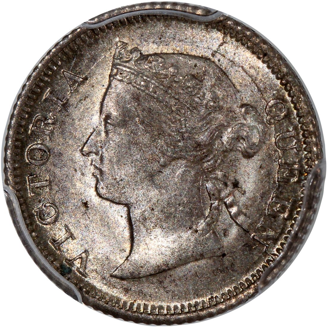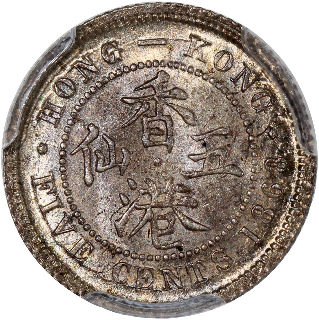 Hong Kong, [PCGS MS63+] silver 5 cents, 1868, Victoria on obverse, (KM-5), Cert. #58667922