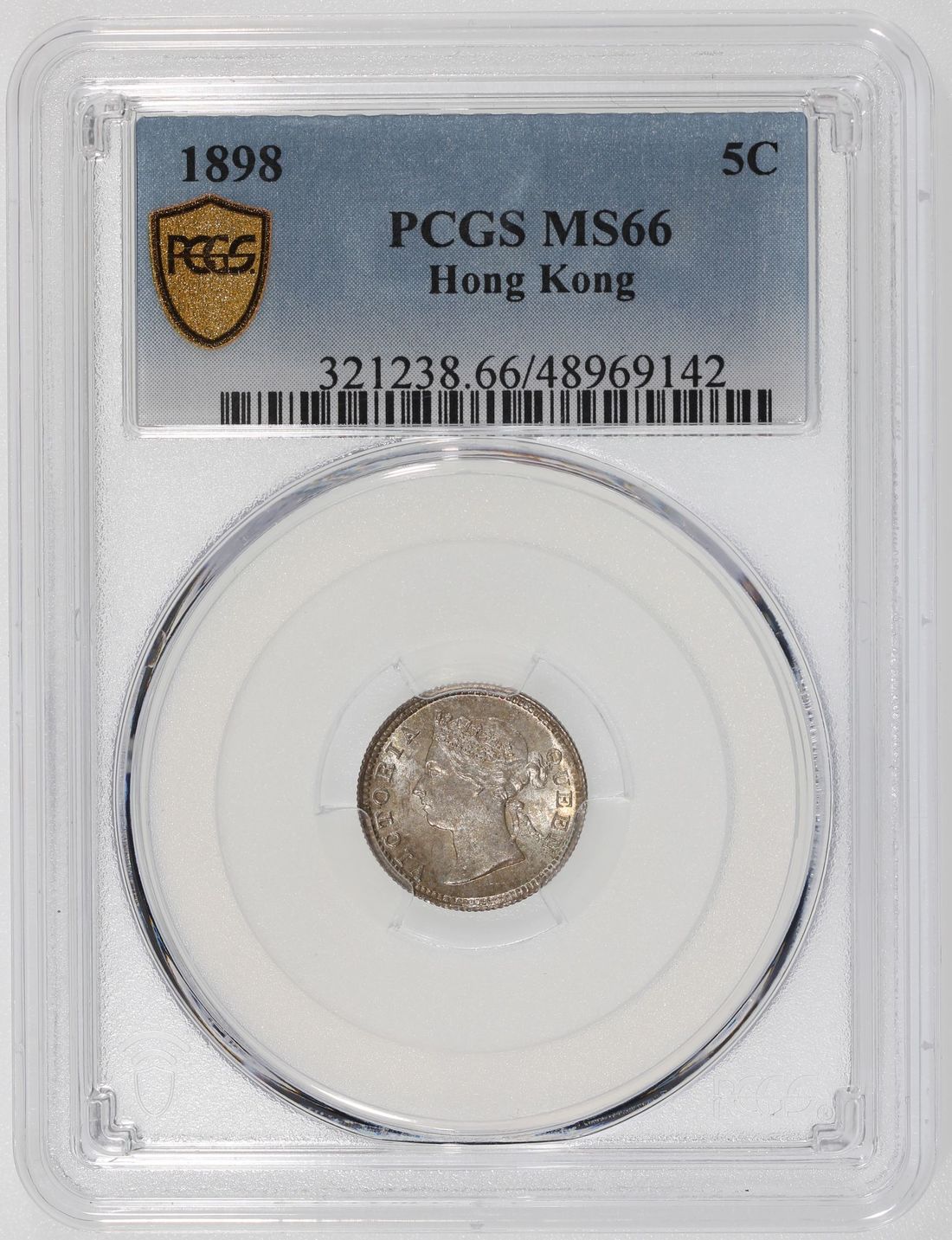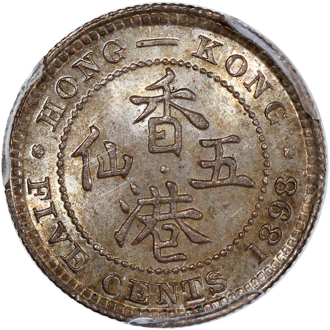 Hong Kong, [PCGS MS66] silver 5 cents, 1898, Victoria on obverse, (KM-5), Cert. #48969142, mottled beige toning, only 7 finer in the PCGS census as of cataloguing