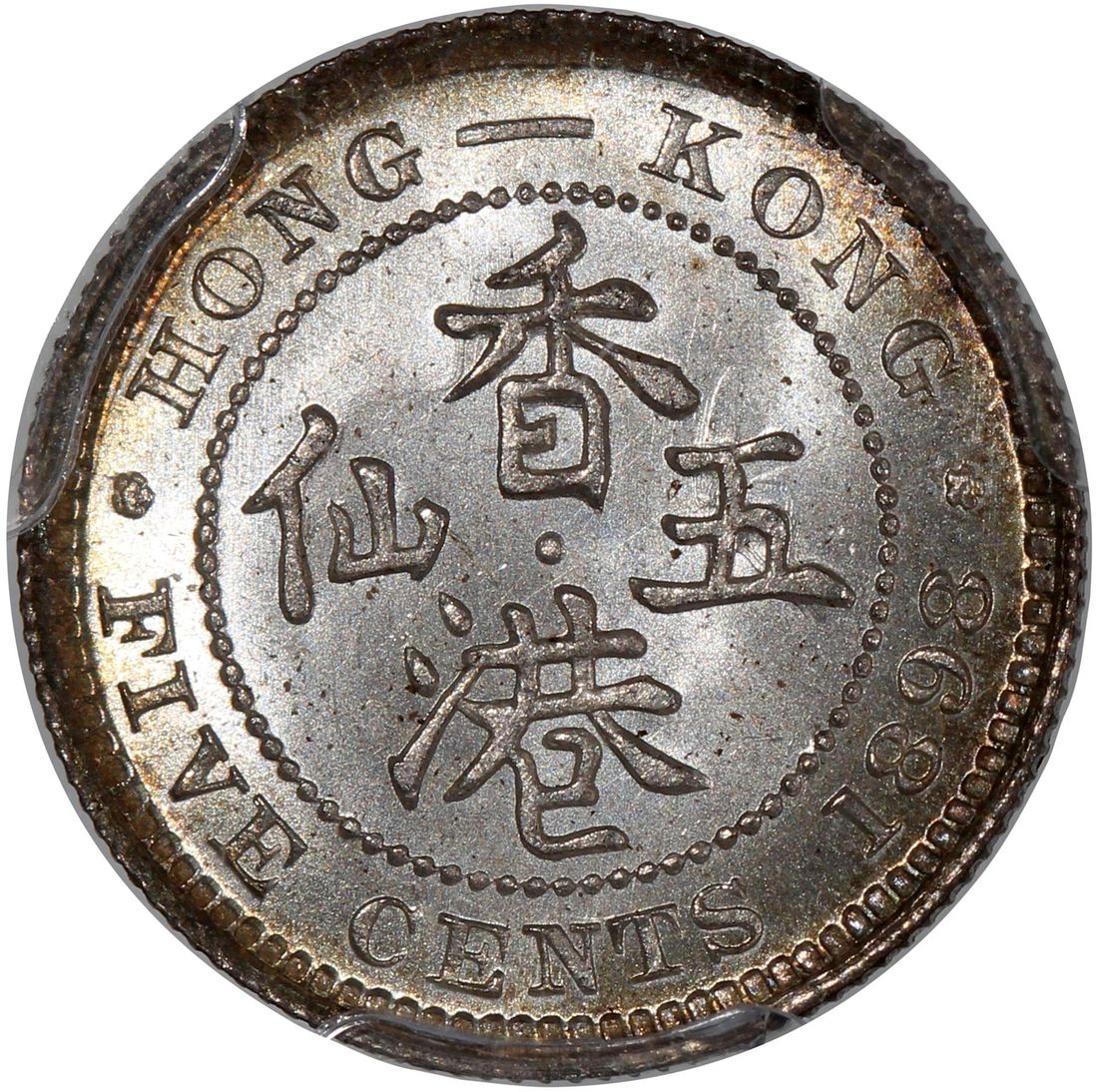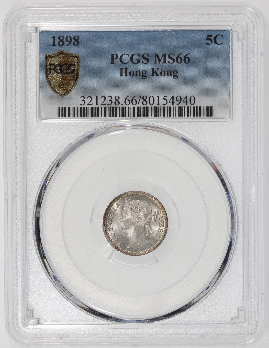 Hong Kong, [PCGS MS66] silver 5 cents, 1898, Victoria on obverse, (KM-5), Cert. #80154940, only 7 finer in the PCGS census as of cataloguing