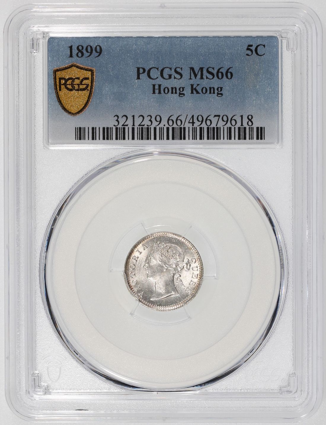 Hong Kong, [PCGS MS66] silver 5 cents, 1899, Victoria on obverse, (KM-5), Cert. #49679618