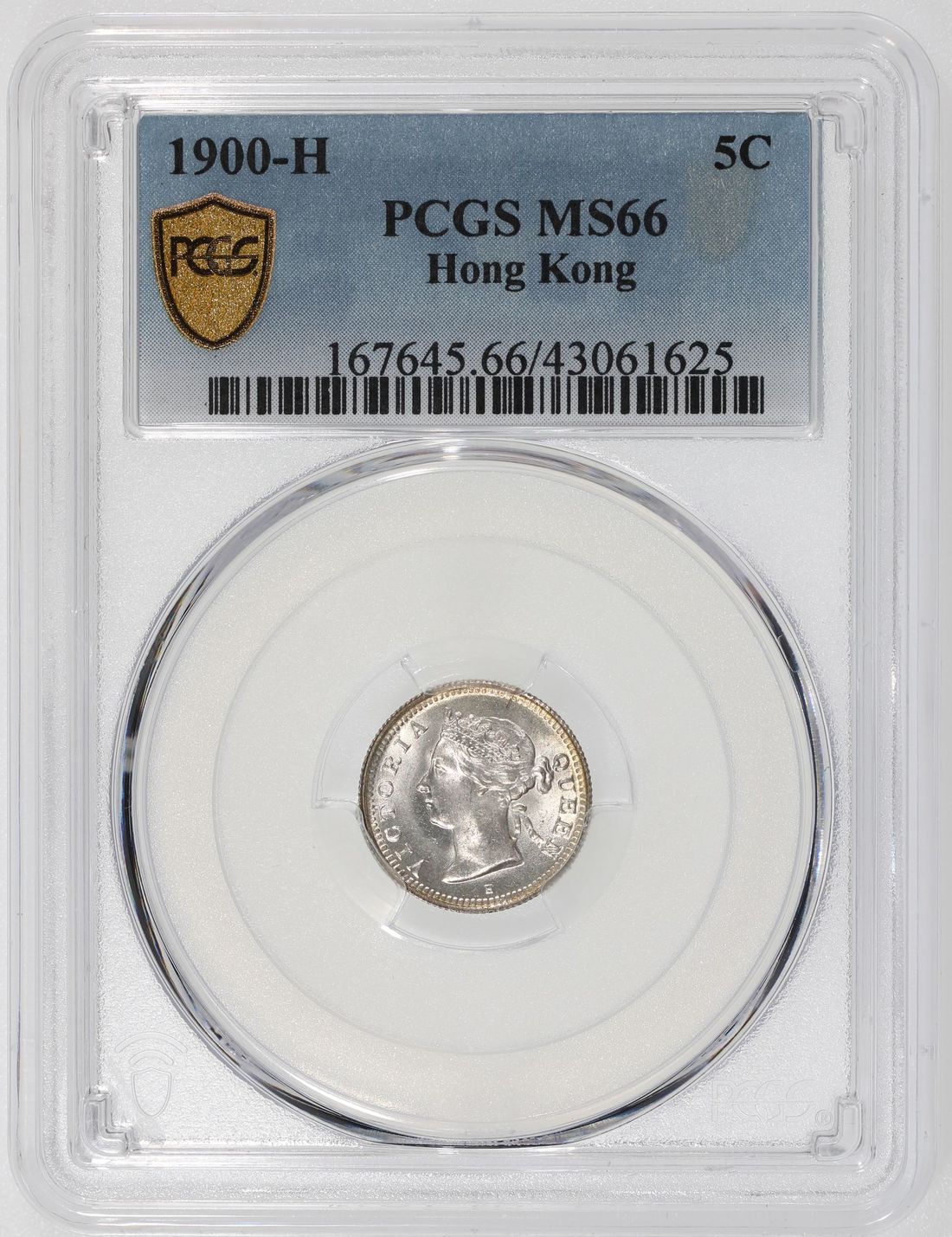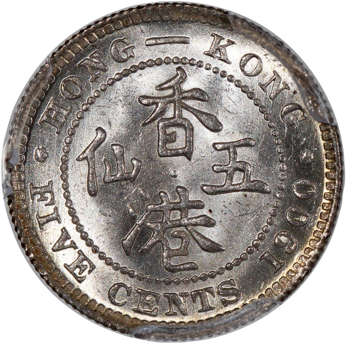 Hong Kong, [PCGS MS66] silver 5 cents, 1900H, Victoria on obverse, (KM-5), Cert. #43061625, only 6 finer examples in the PCGS population report