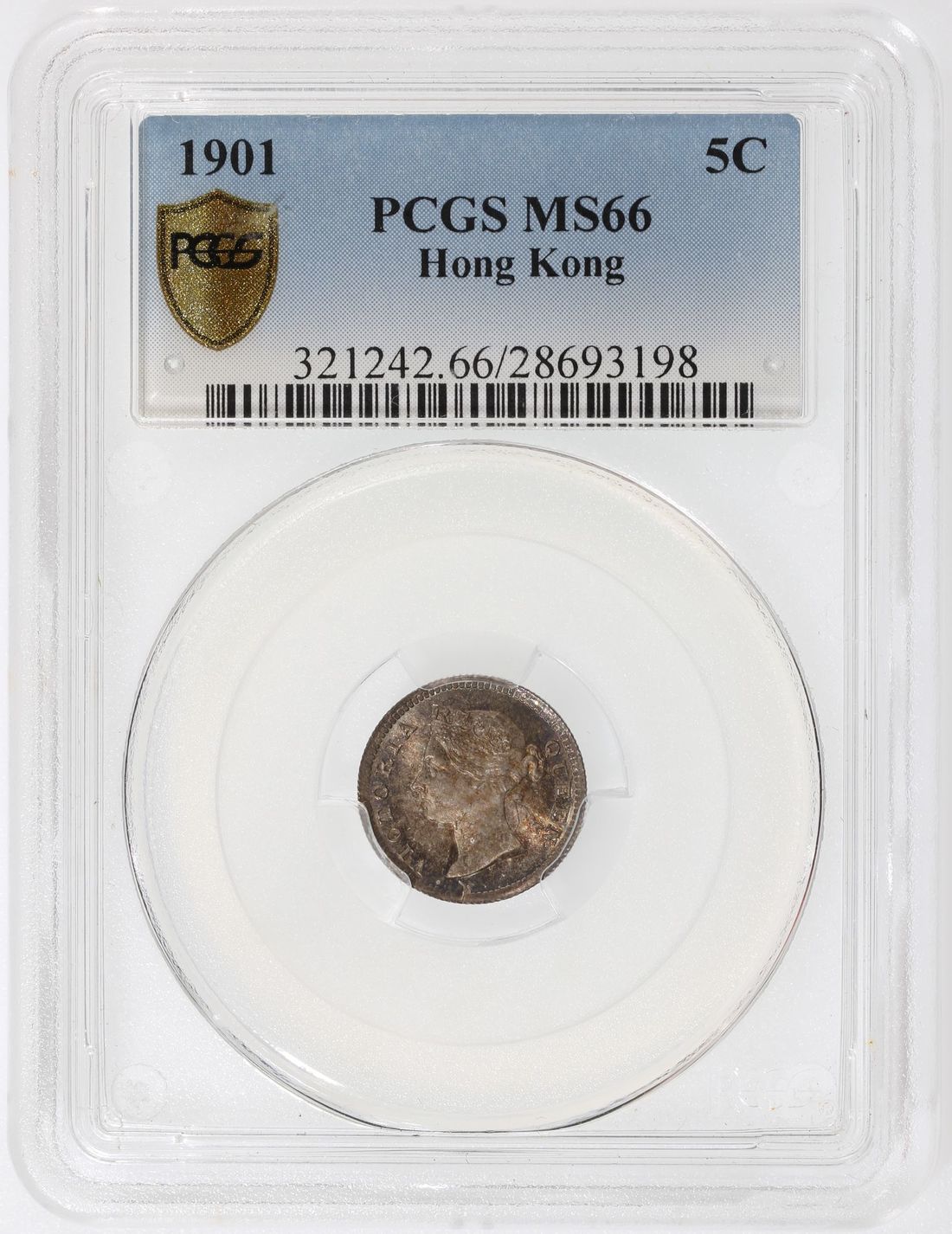 Hong Kong, [PCGS MS66] silver 5 cents, 1901, Royal mint, Victoria on obverse, (KM-5), Cert. #28693198
