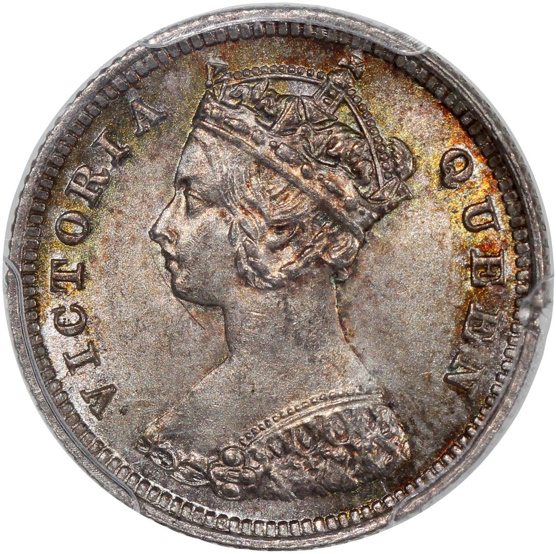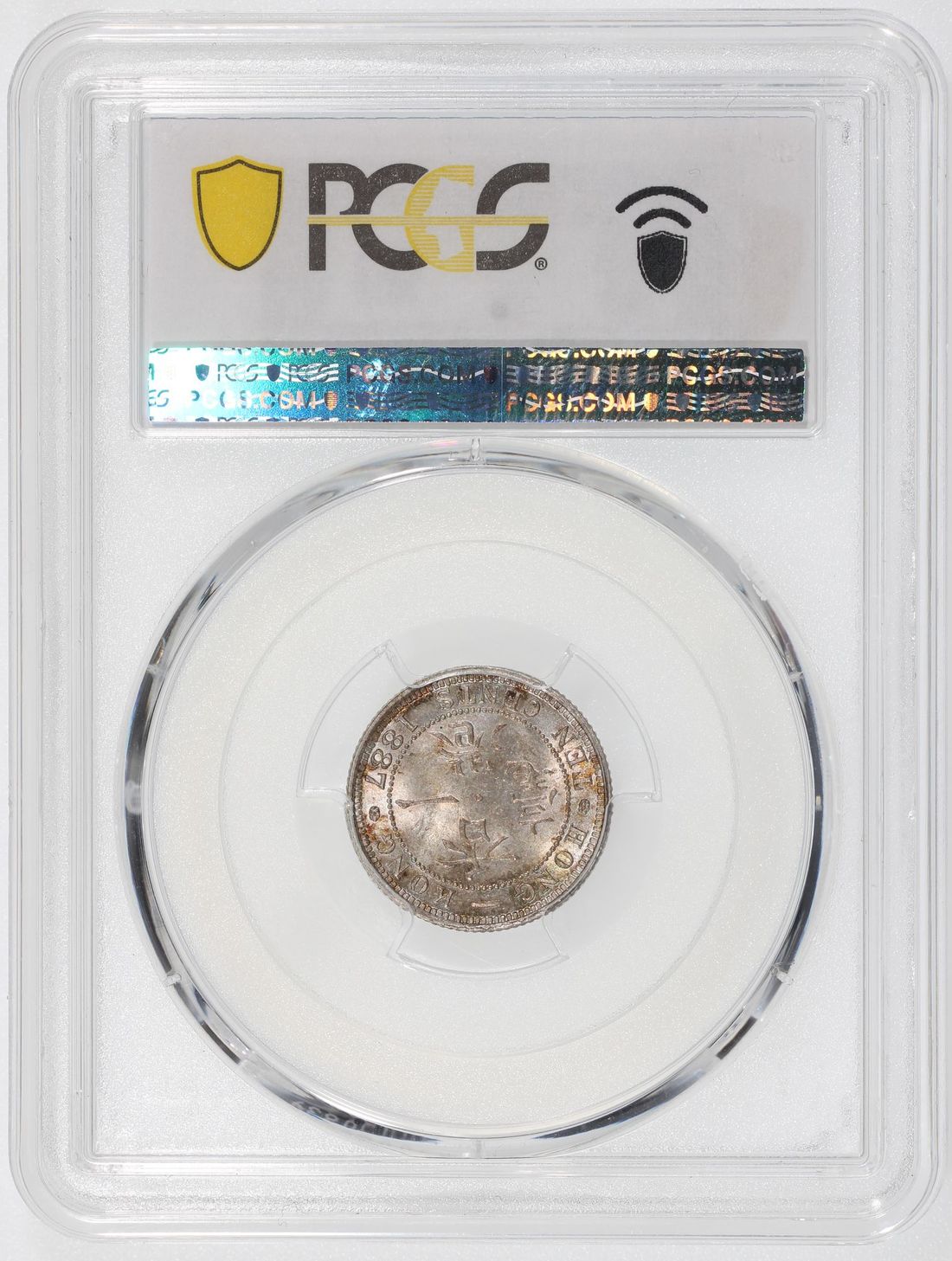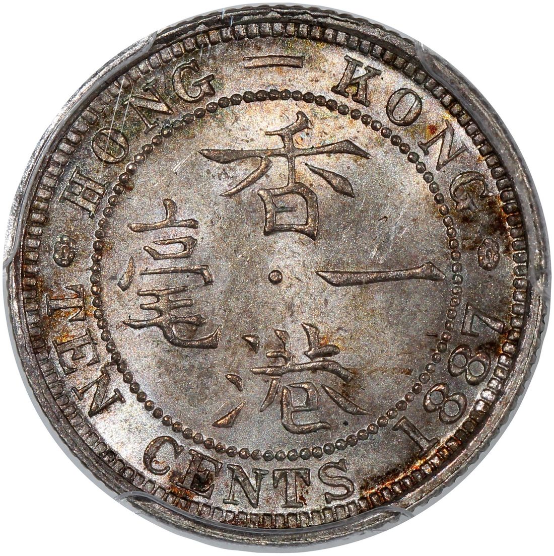 Hong Kong, [PCGS MS65] silver 10 cents, 1887, Victoria on obverse, (KM-6.3), Cert.# 45731269, only one graded higher at MS65+ as of cataloguing