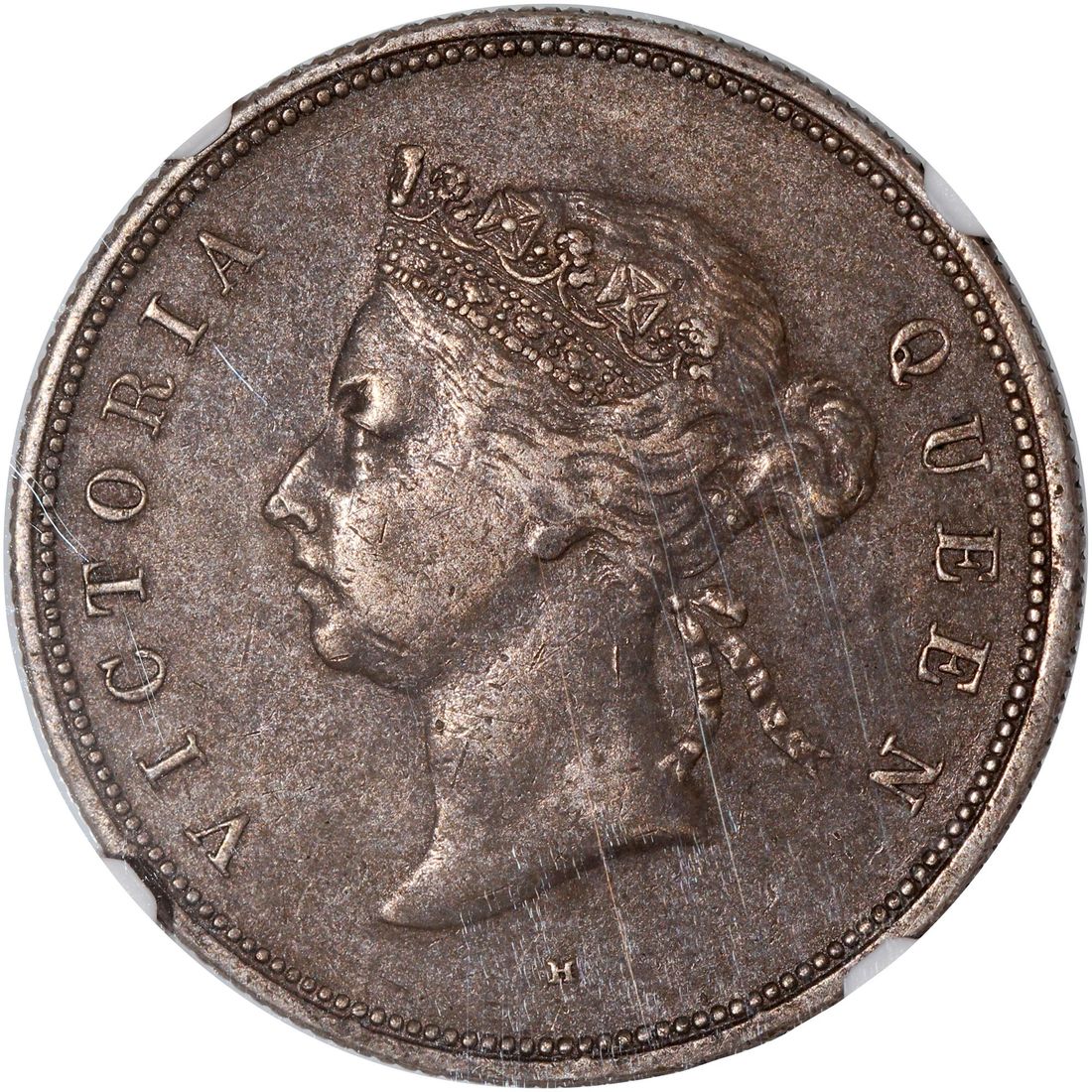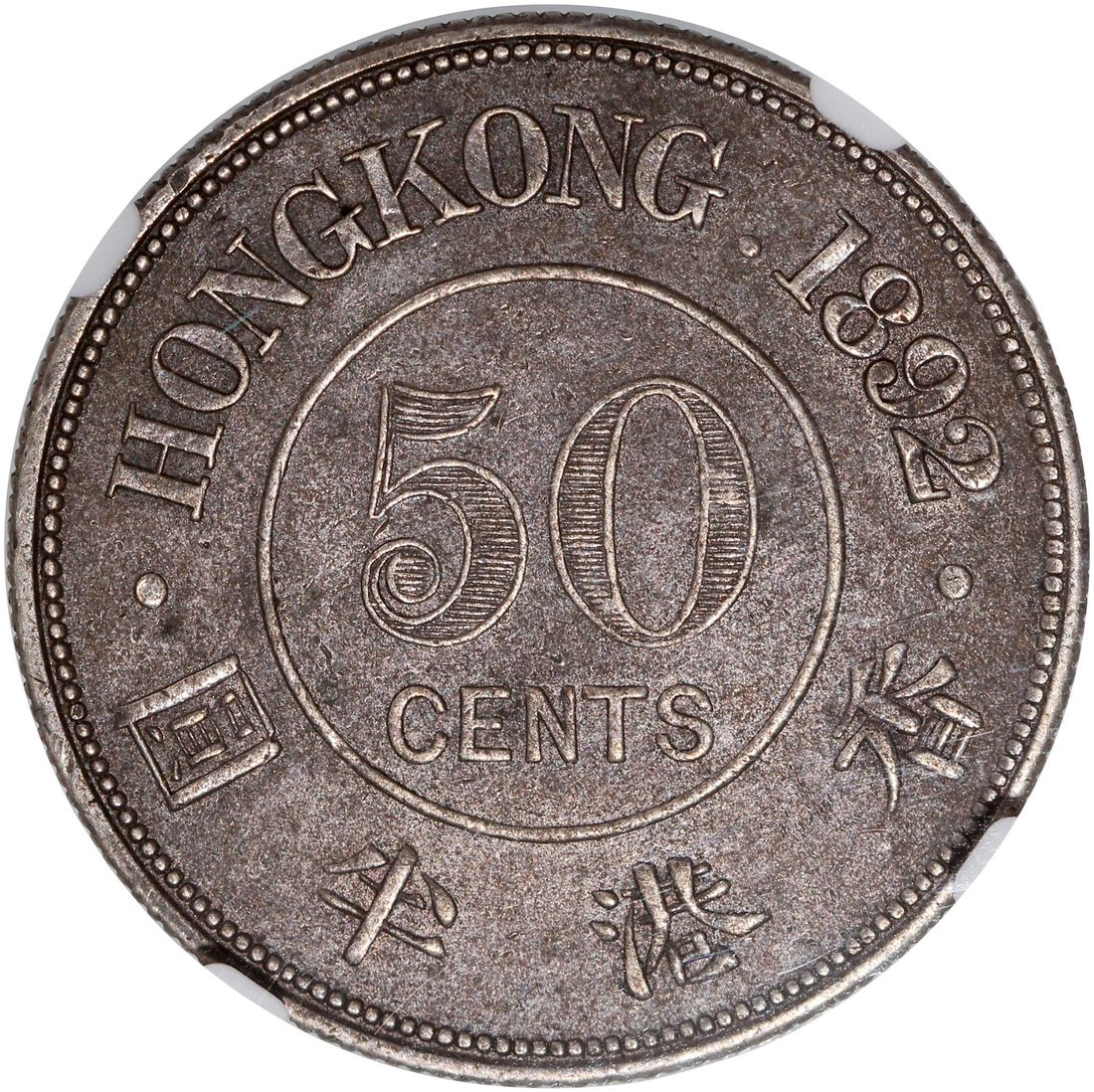 Hong Kong, [NGC XF45] silver 50 cents, 1892H, Key Date, Heaton mint, Victoria on obverse, (KM-9.2), Cert. #6136303-001, completely original and wholesome pewter toning, with 1892H having the lowest mintage among this series