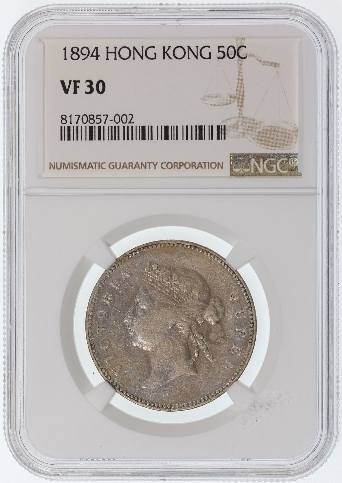 Hong Kong, Victoria, [NGC VF30] silver 50 cents, 1894 #8170857-002.