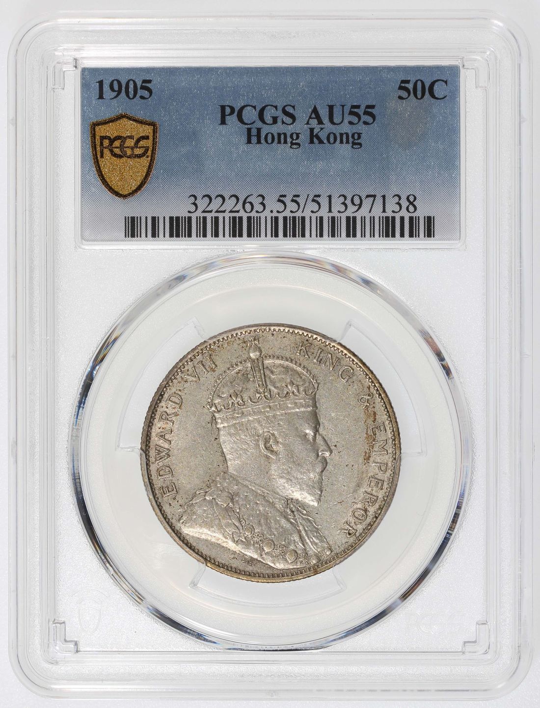 Hong Kong, [PCGS AU55] silver 50 cents, 1905, Royal mint, Edward VII on obverse, (KM-15), Cert. #51397138