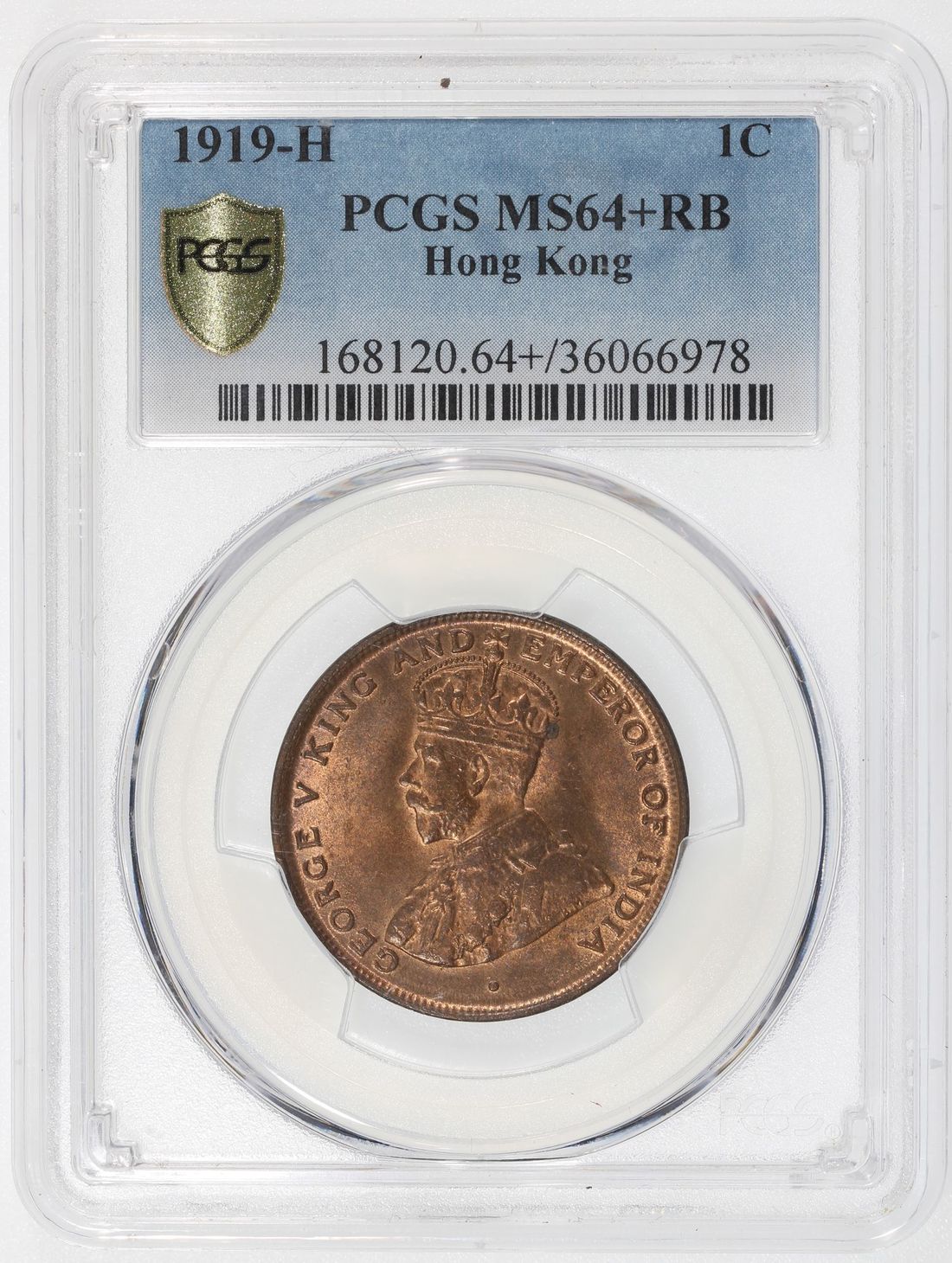 Hong Kong, [PCGS MS64+RB] bronze 1 cent, 1919H, George V on obverse, (KM-16), Cert. #36066978