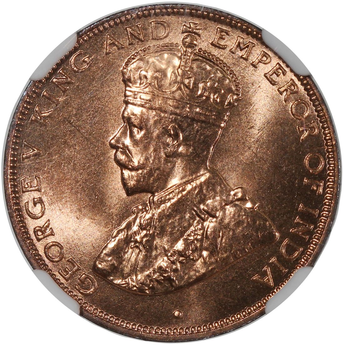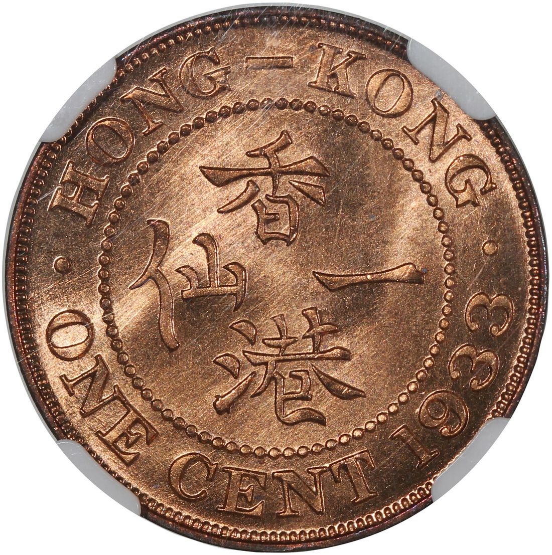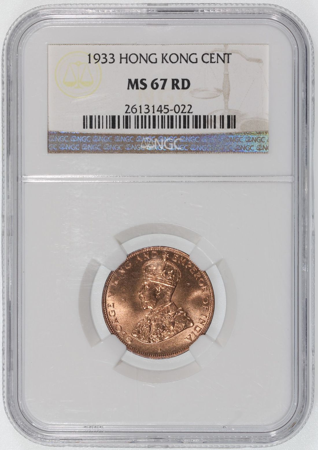 Hong Kong, [NGC MS67RD] bronze 1 cent, 1933, George V on obverse, (KM-17), Cert. #2613145-022, the highest grade in the NGC census!