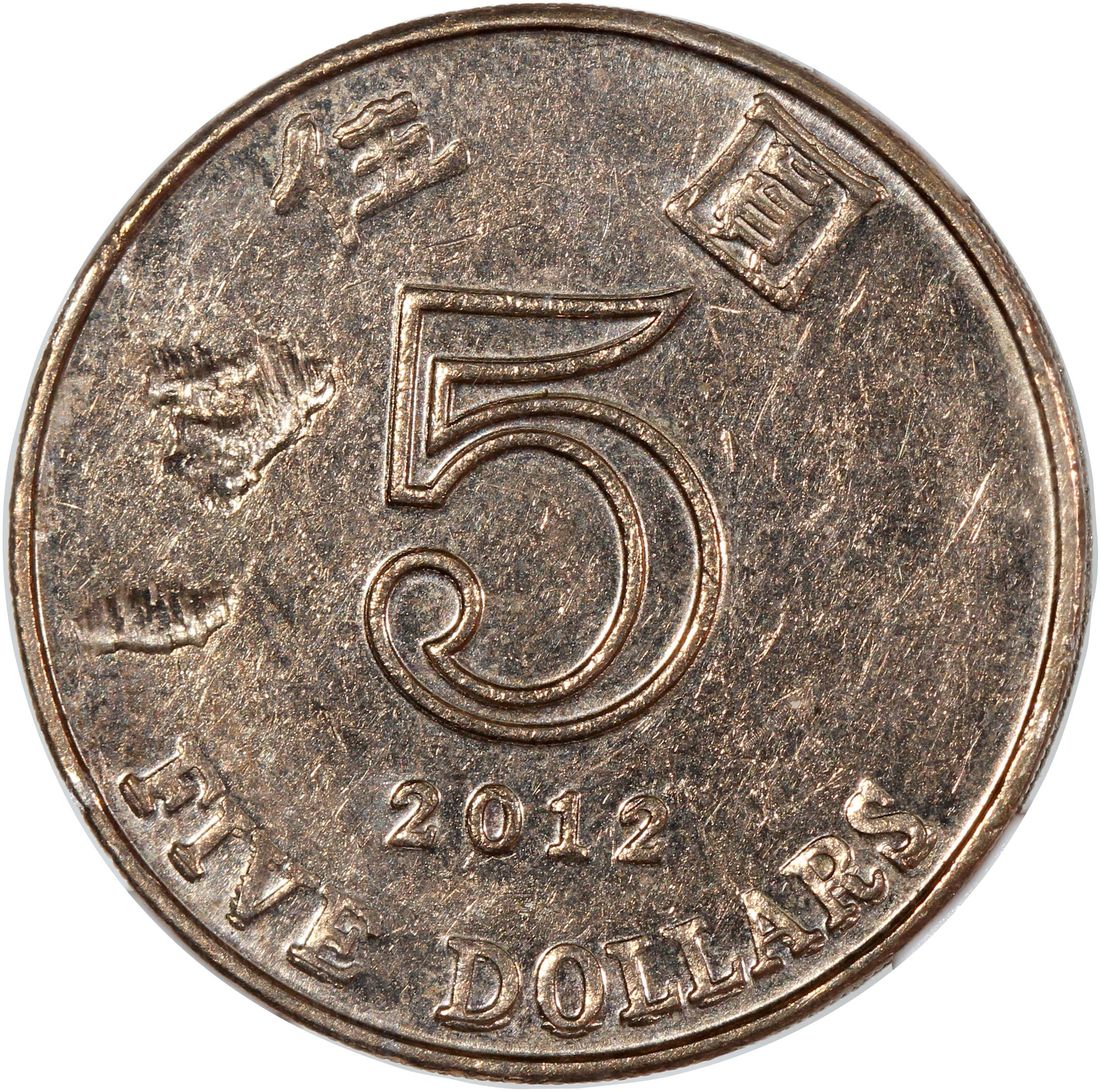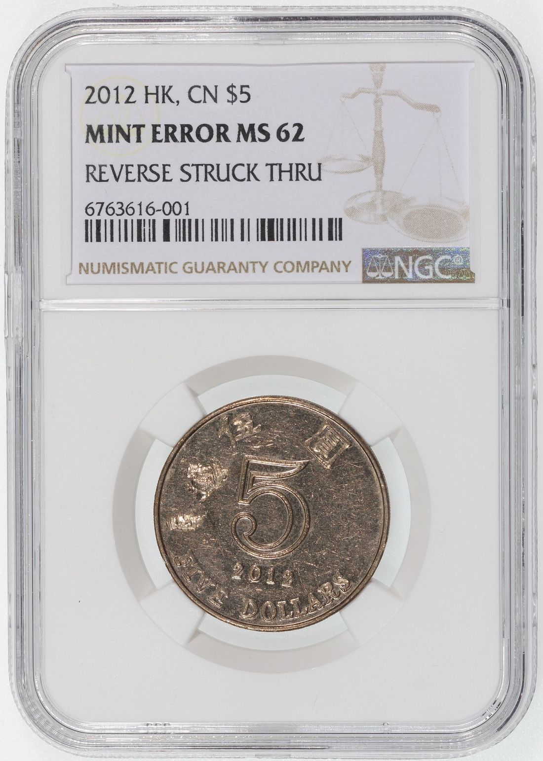 Hong Kong, [NGC MS62] MINT ERROR copper nickel $5, 2012, Reverse Struck Through, (KM-65), Cert. #6763616-001