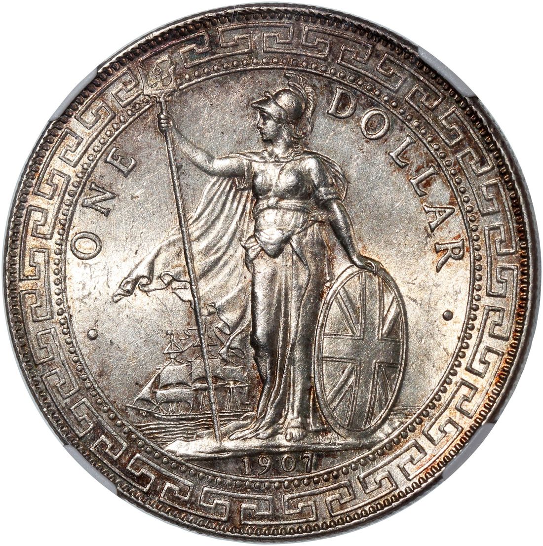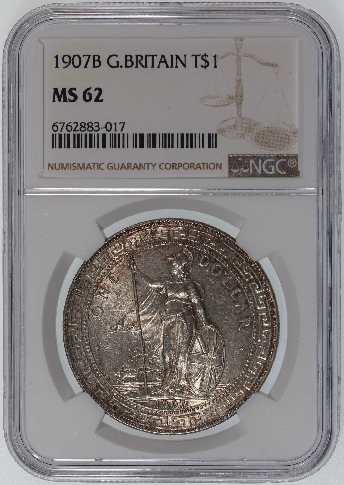 Great Britain, Trade Dollar [NGC MS62] 1907B, Cert.# 6762883-017