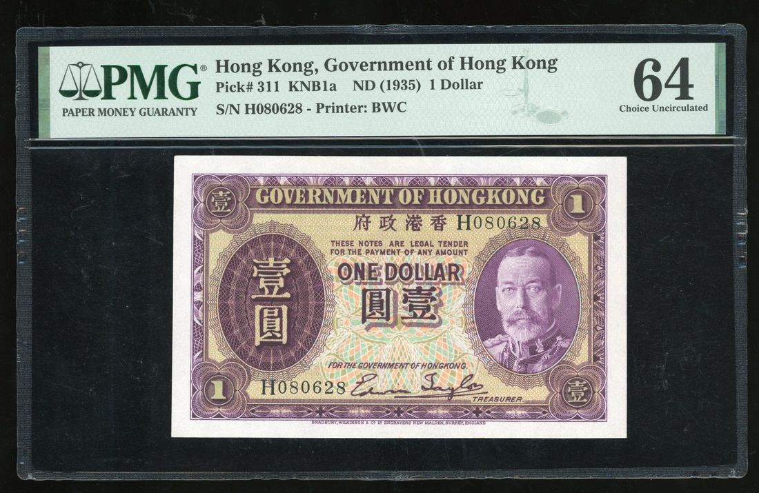 Government of HongKong, $1, ND (1935), serial number H080628, George V,