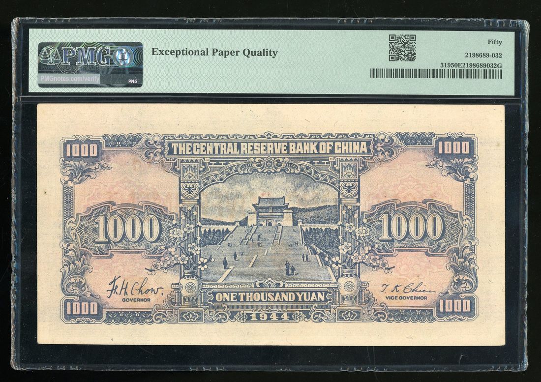 (Pick 319), PMG 50EPQ, one of a total of ten in the PMG census, and the sole example being awarded the EPQ status! Rare and choice