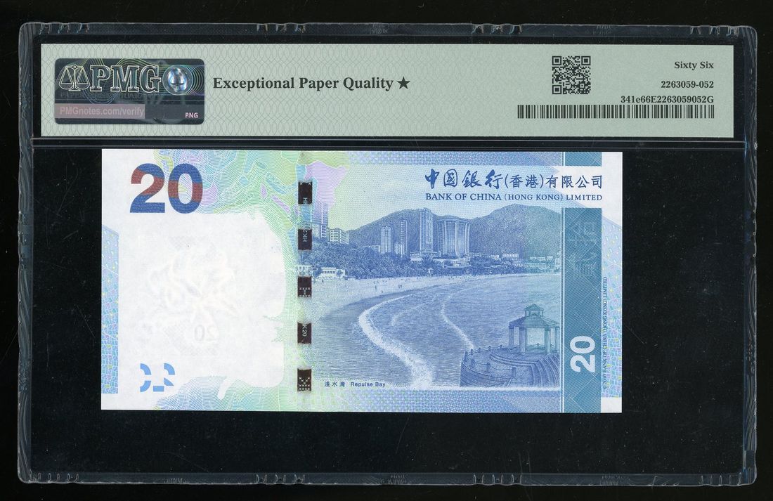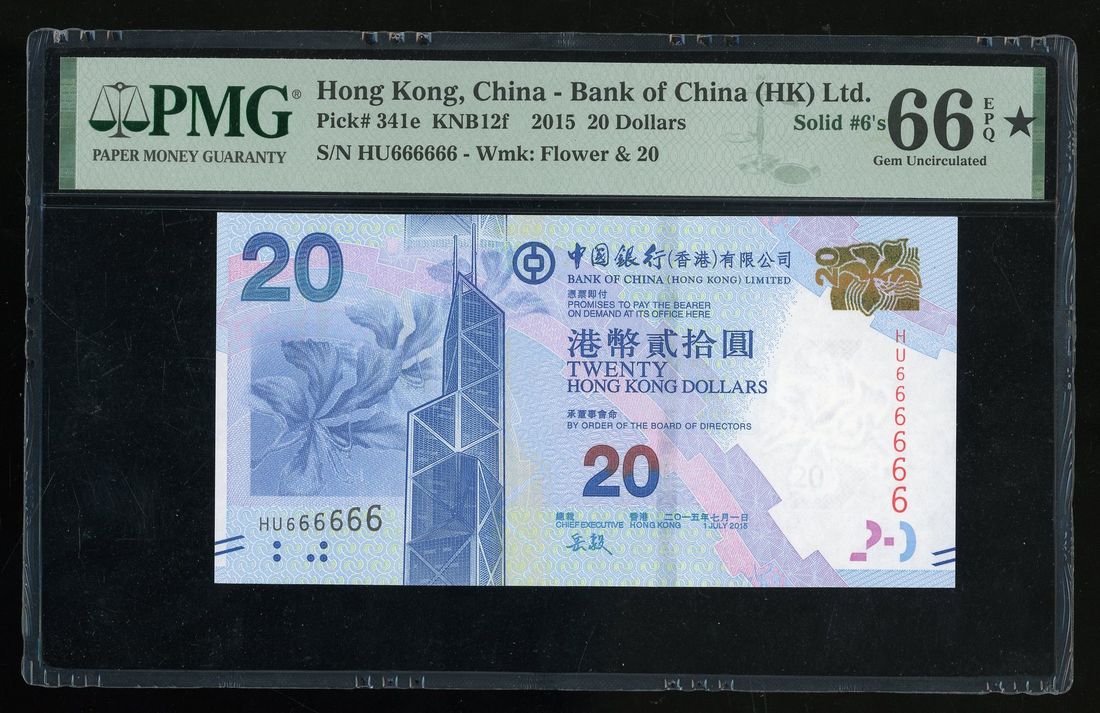Bank of China, Hong Kong, $20, 1.7.2015, solid serial number HU 666666, (Pick 341e), PMG 66EPQ*