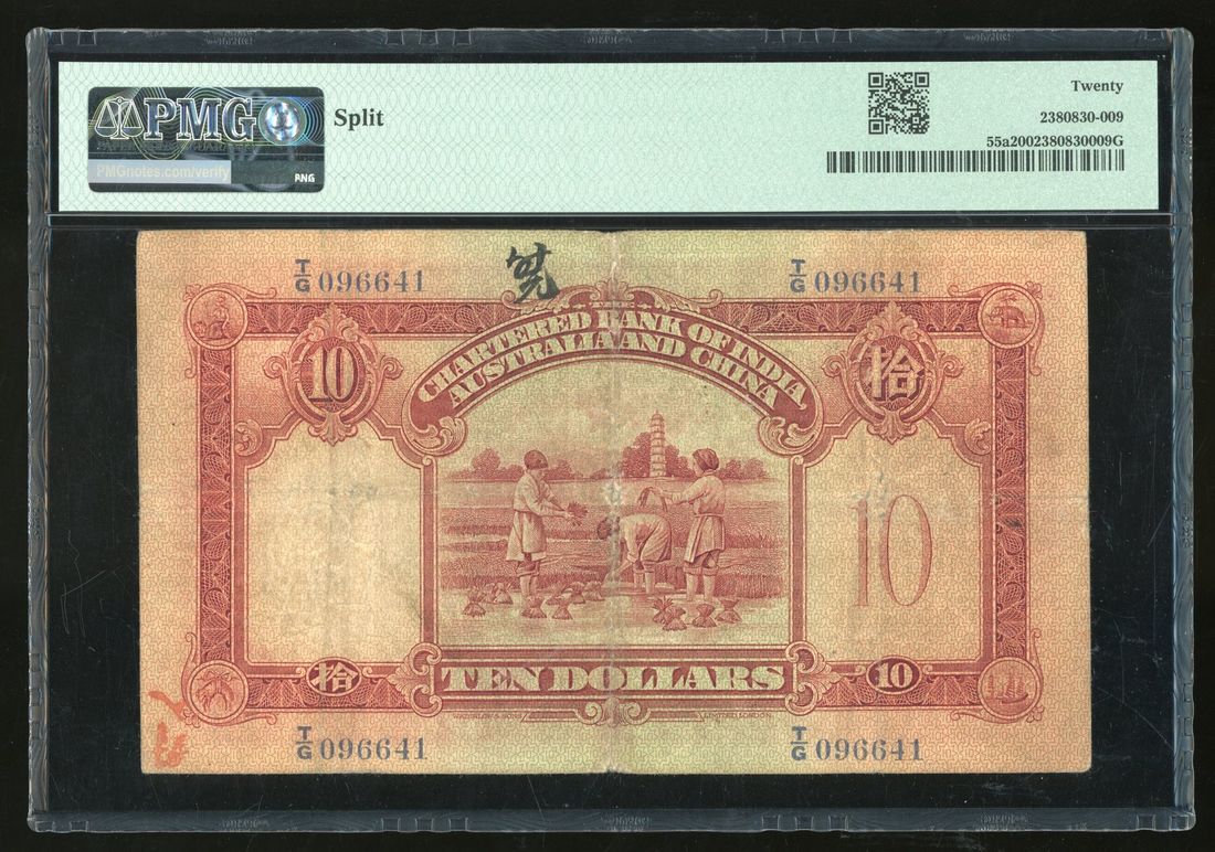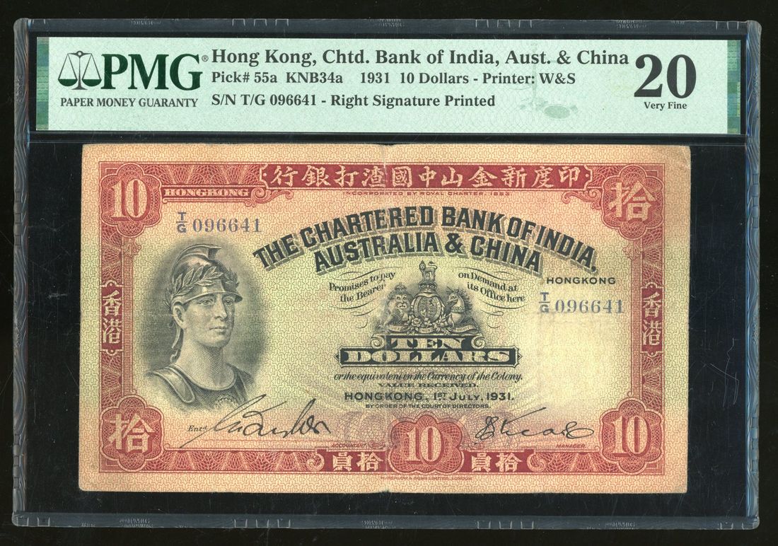 Chartered Bank of India, Australia & China, Hong Kong, $10, 1.7.1931, serial number T/G 096641, one handsigned signature,