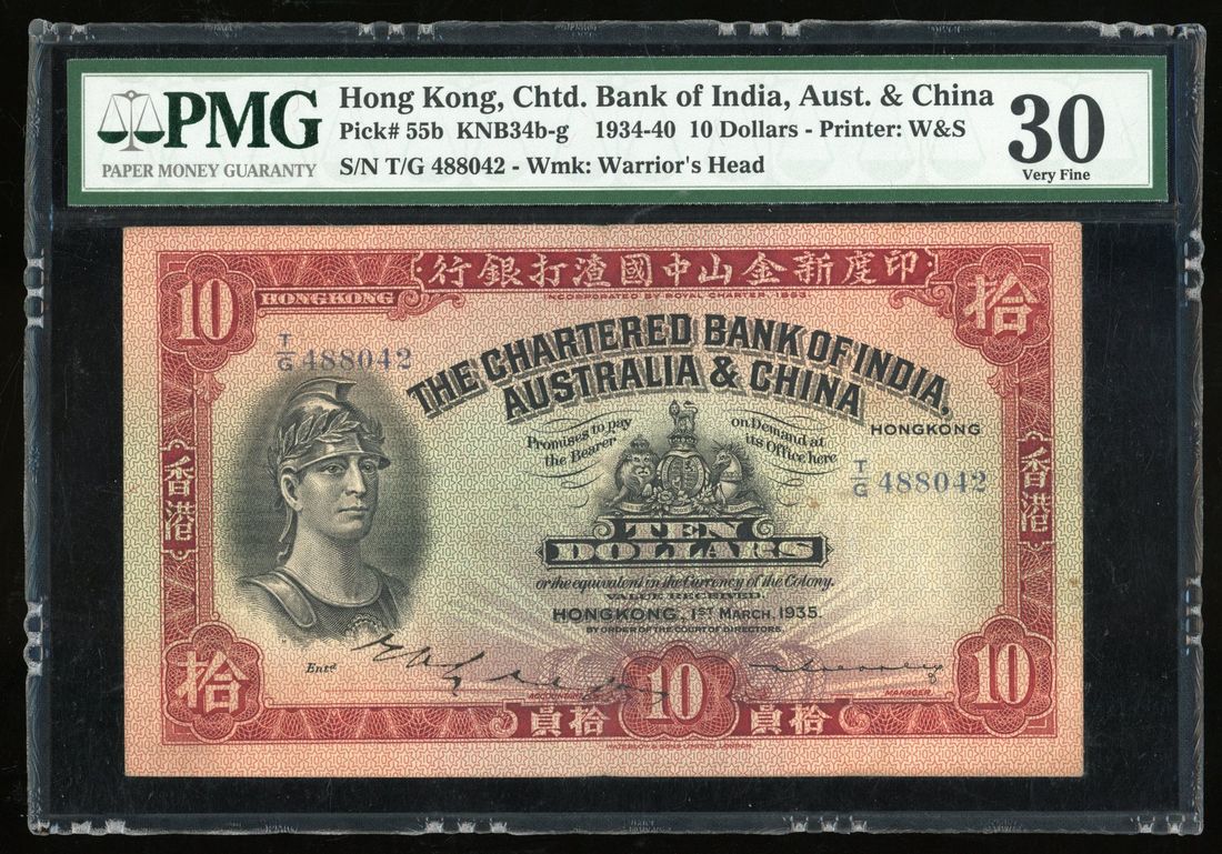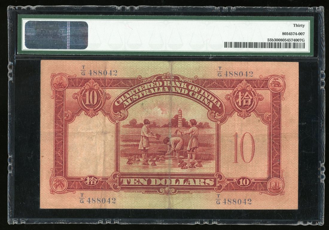 Chartered Bank of India, Australia & China, Hong Kong, $10, 1.3.1935, serial number T/G 488042, one handsigned signature,