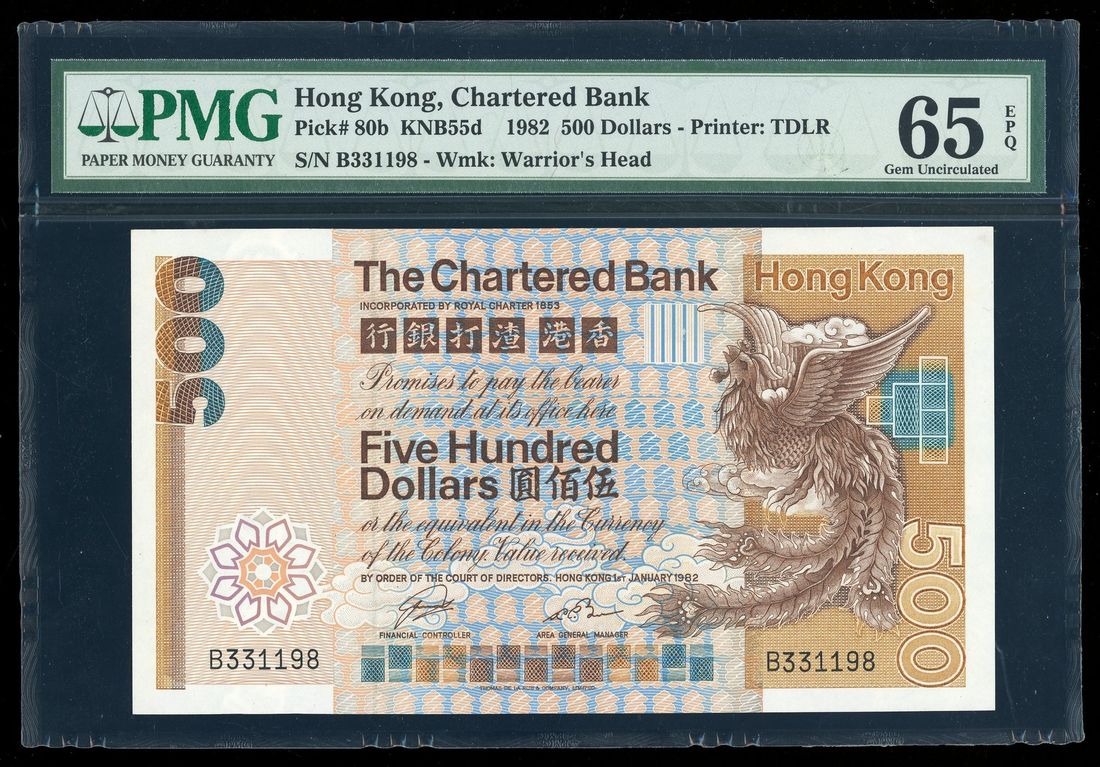 The Chartered Bank, Hong Kong, $500, 1.1.1982, serial number B 331198, (Pick 80b), PMG 65EPQ