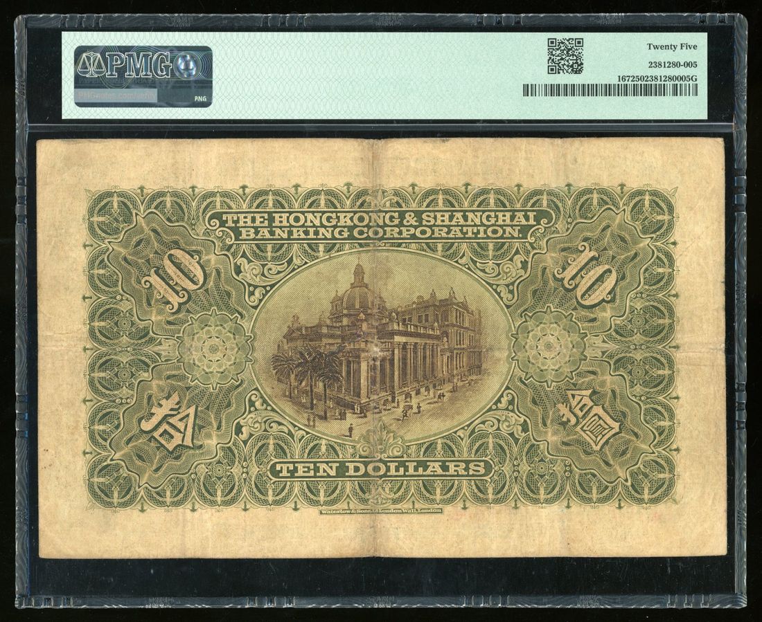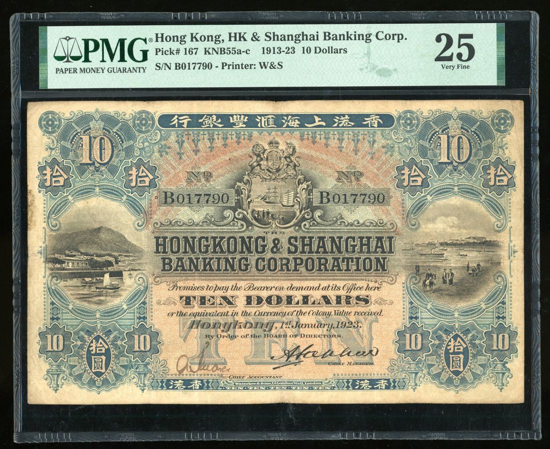 HongKong & Shanghai Banking Corporation, $10, 1.1.1923, serial number B017790, one handsigned signature,