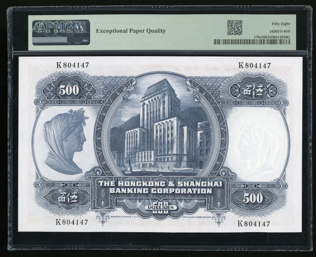 HongKong & Shanghai Banking Corporation, $500, 11.2.1968, serial number K804147, (Pick 179e), PMG 58EPQ