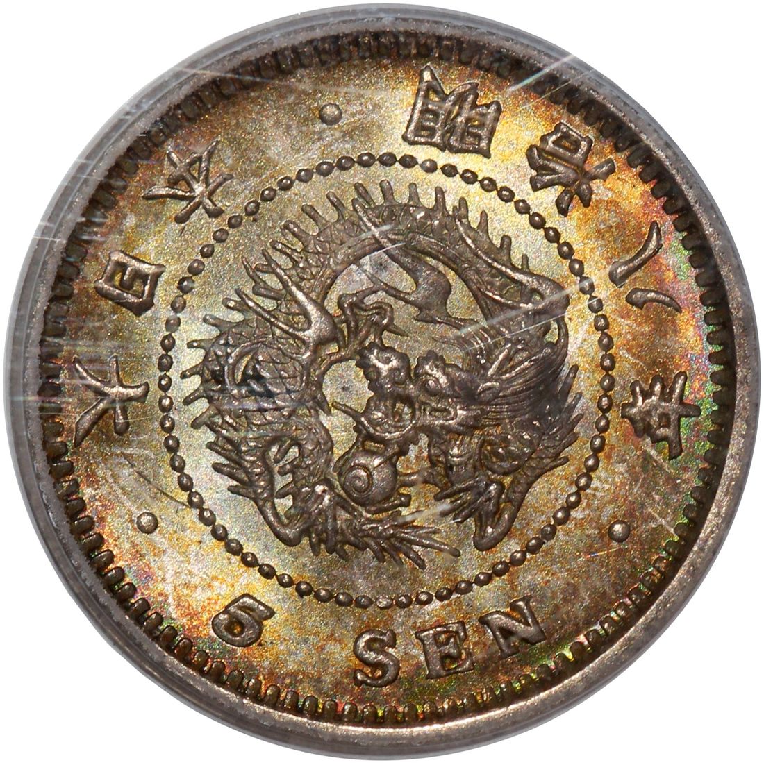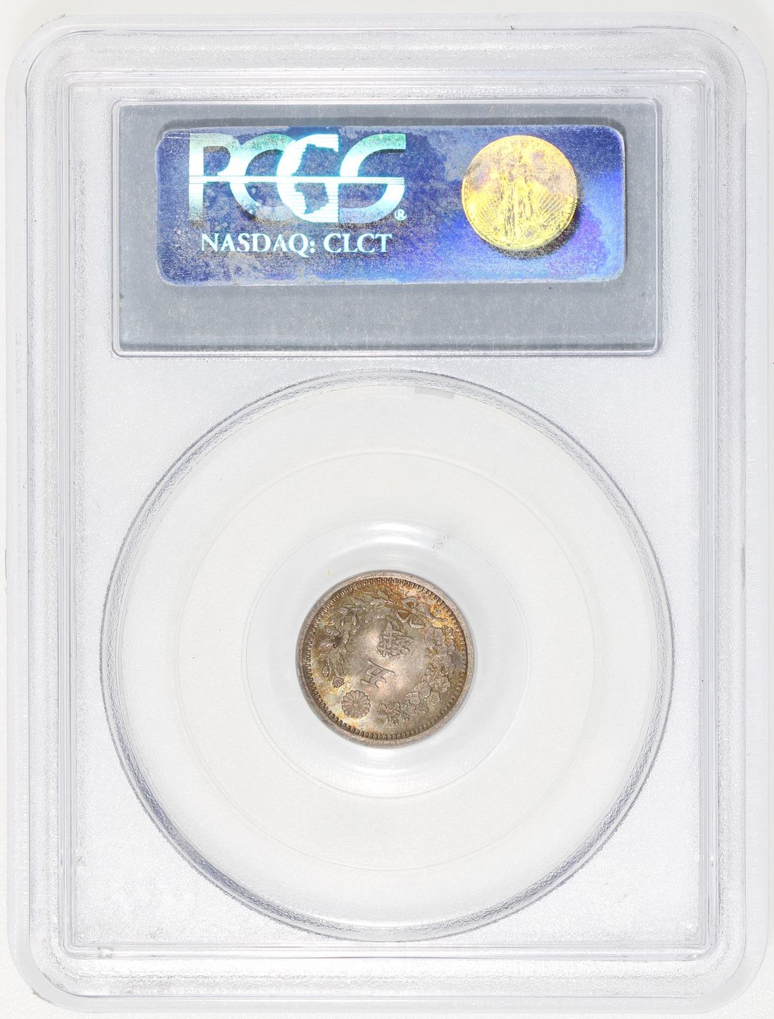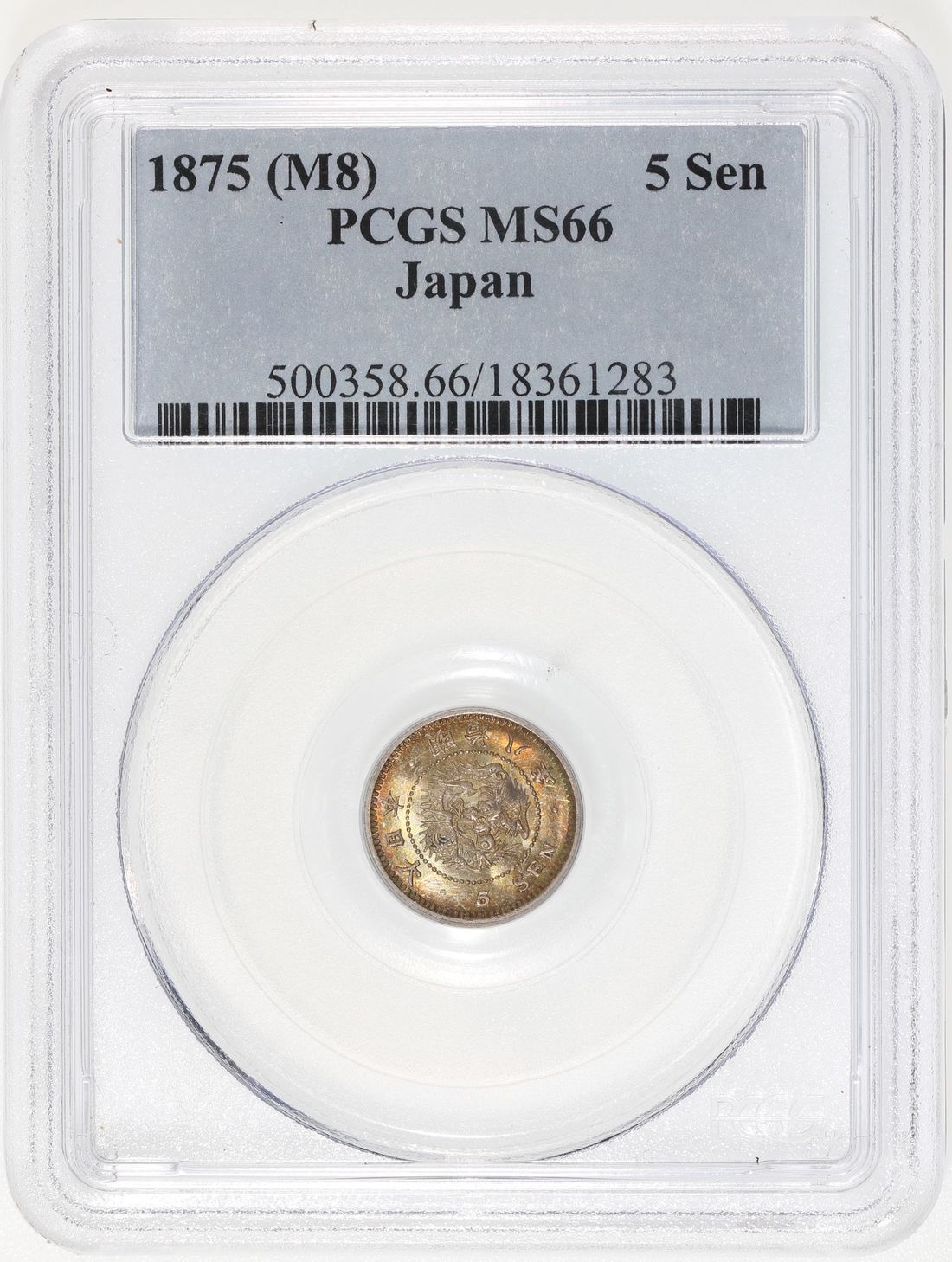 Japan, [PCGS MS66] silver 5 sen, Meiji Year 8 (1875), type 4, (JNDA 01-35), Cert. #18361283, very appealing golden gradient toning