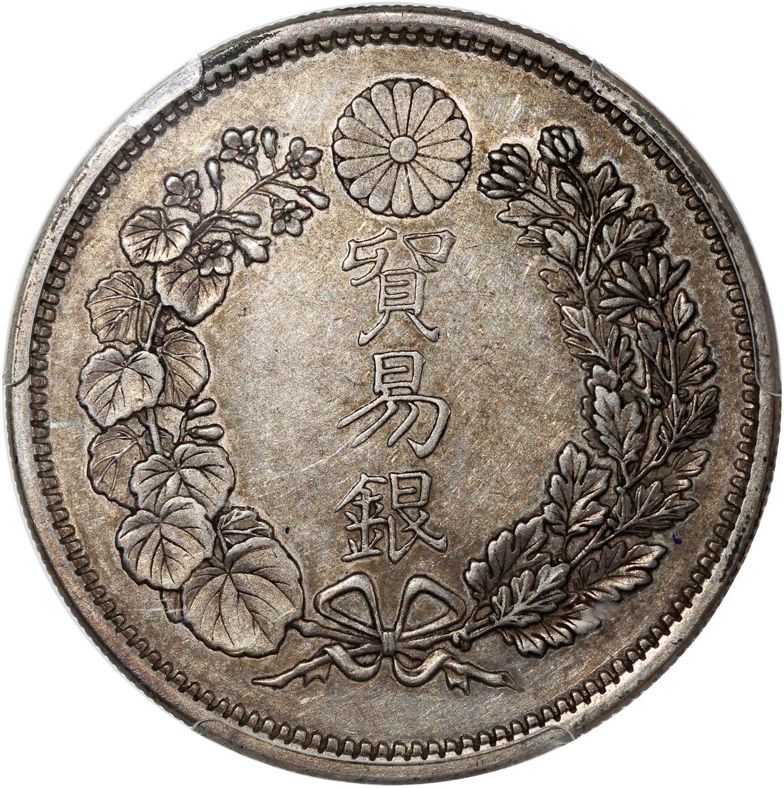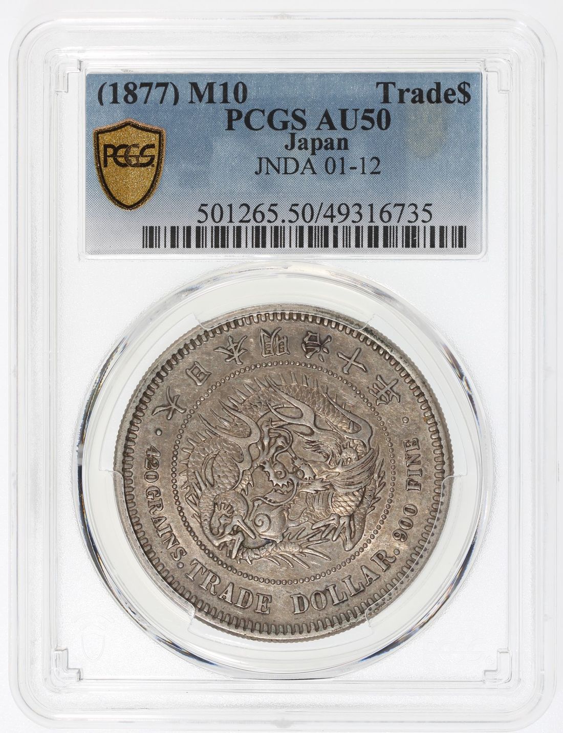 Japan, [PCGS AU50] silver Trade dollar, Meiji Year 10(1877), with greyish toning, rare. Cert.# 49316735
