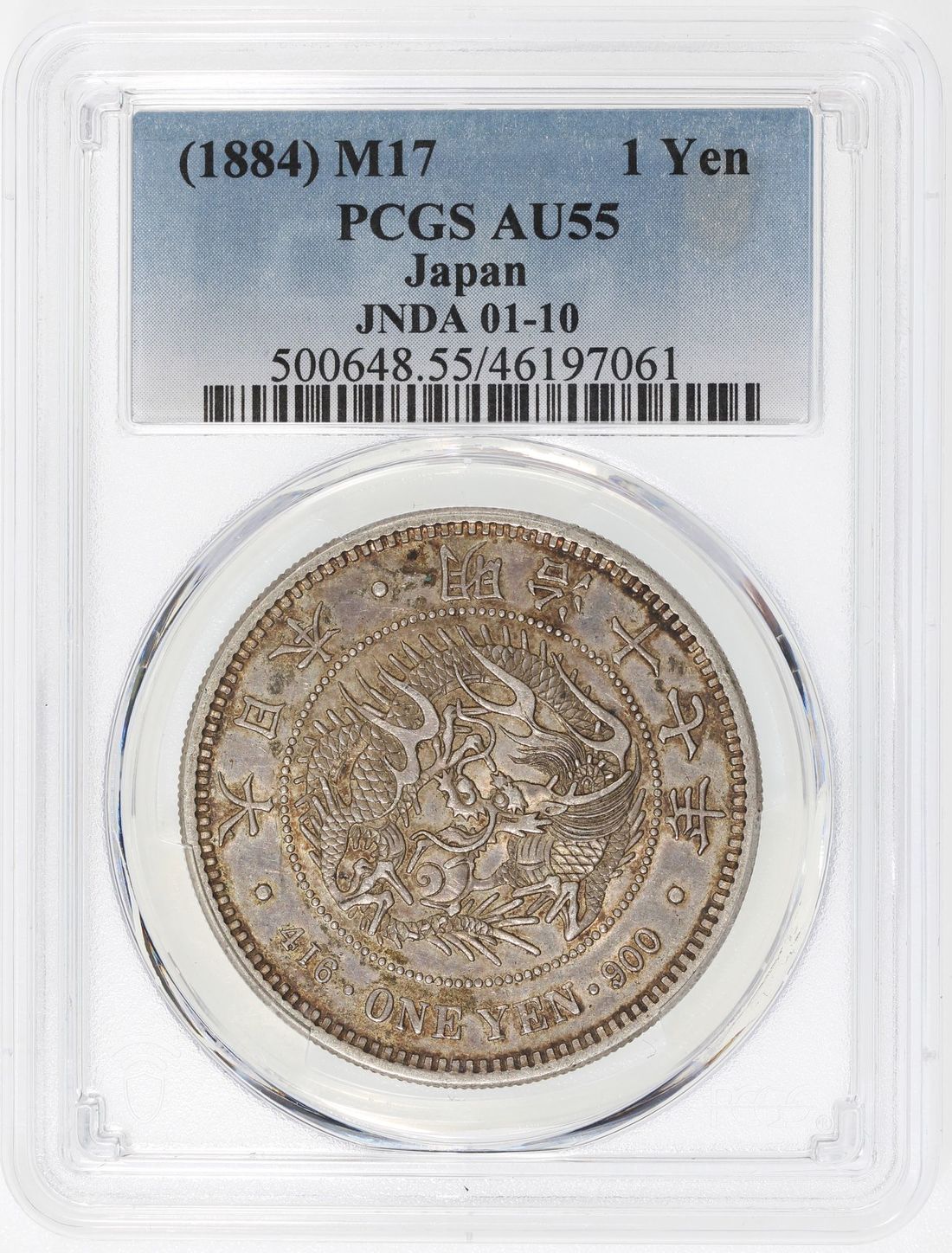 Japan, [PCGS AU55] silver 1 yen, Meiji 17(1884), toned. Cert.# 46197061