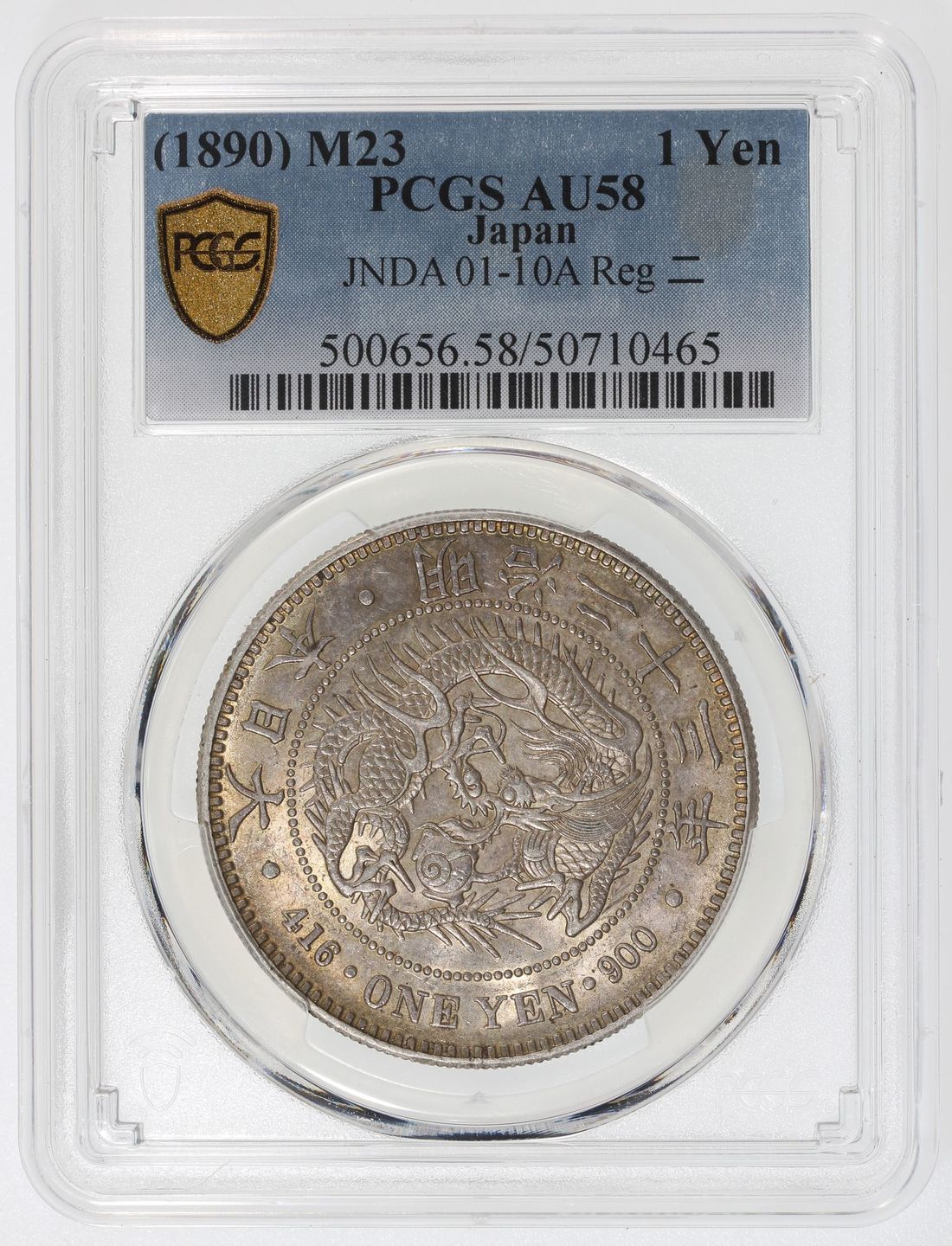 Japan, [PCGS AU58] silver yen, Meiji Year 23(1890), still with luster. Cert.# 50710465