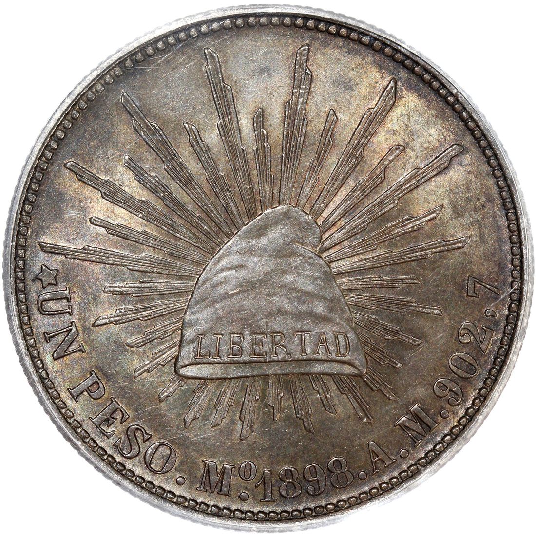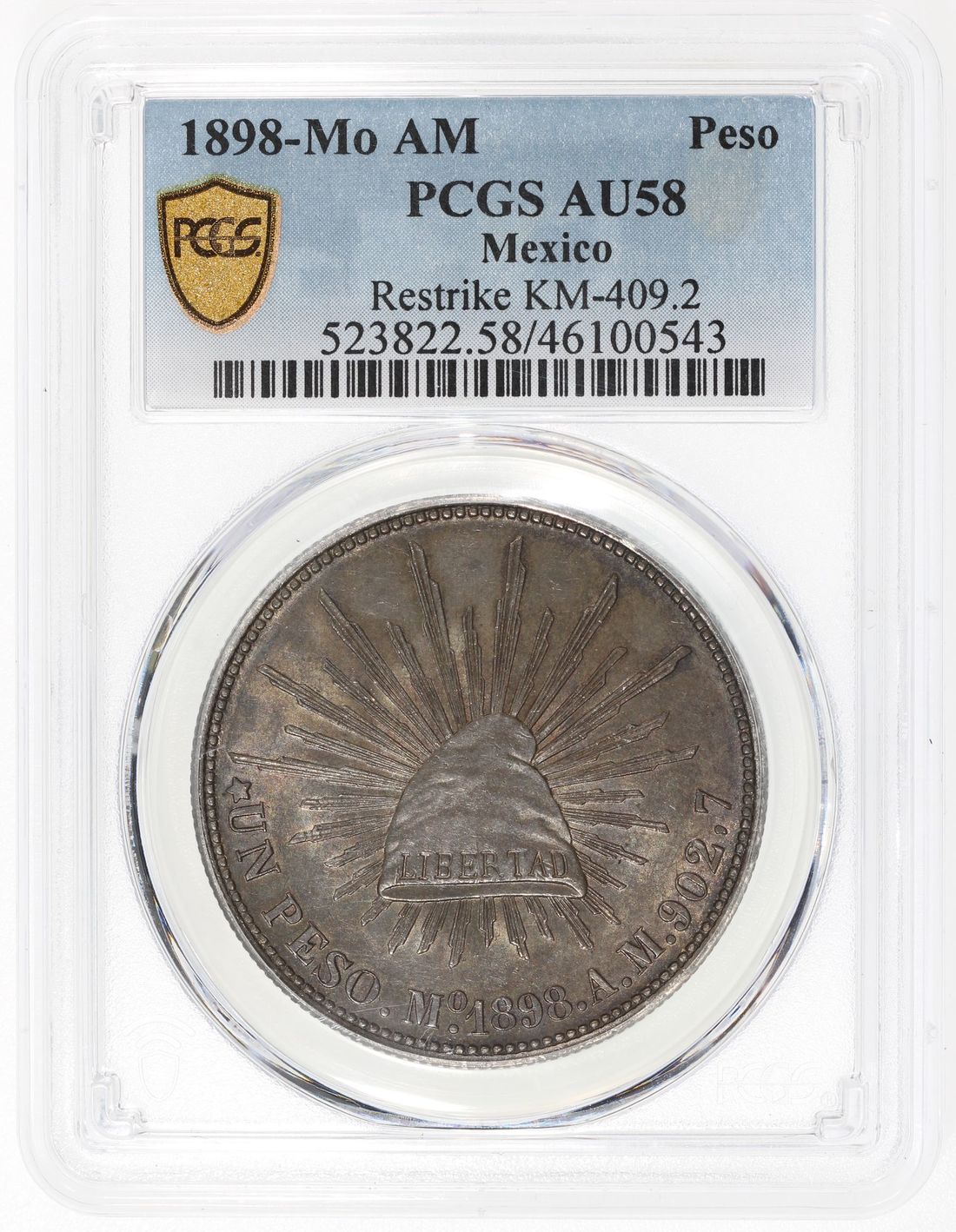 Mexico, [PCGS AU58] restrike silver 1 peso, 1898-Mo AM, dark toned. Cert.# 46100543