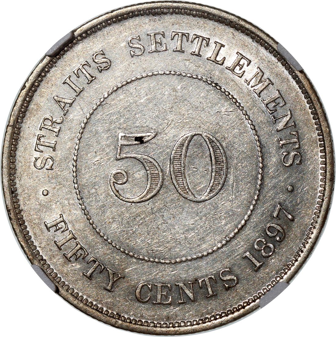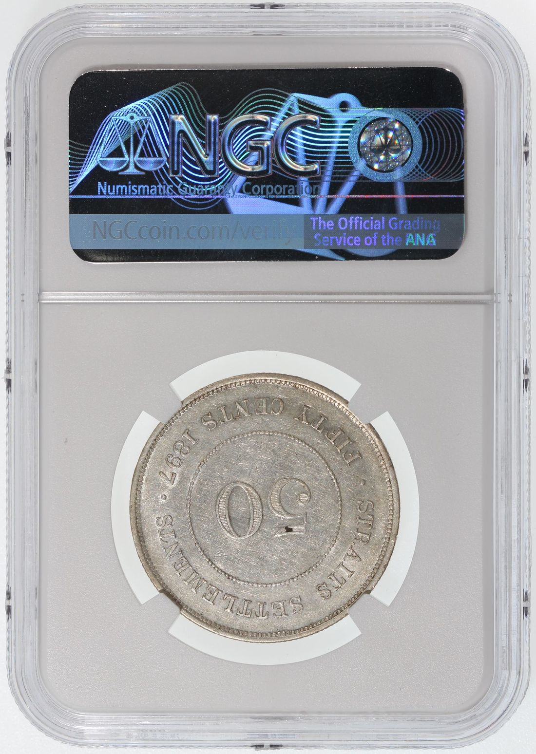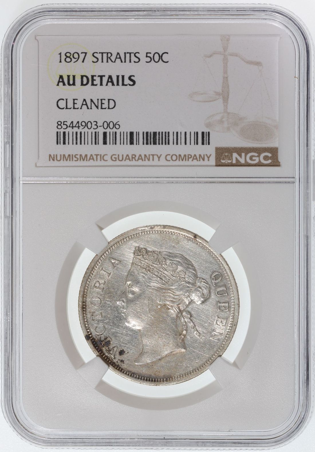 Straits Settlements, [NGC AU Details] silver 50 cents, 1897, London Mint, mintage 36,000,