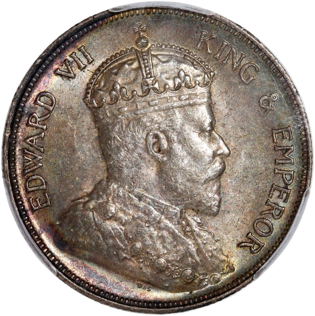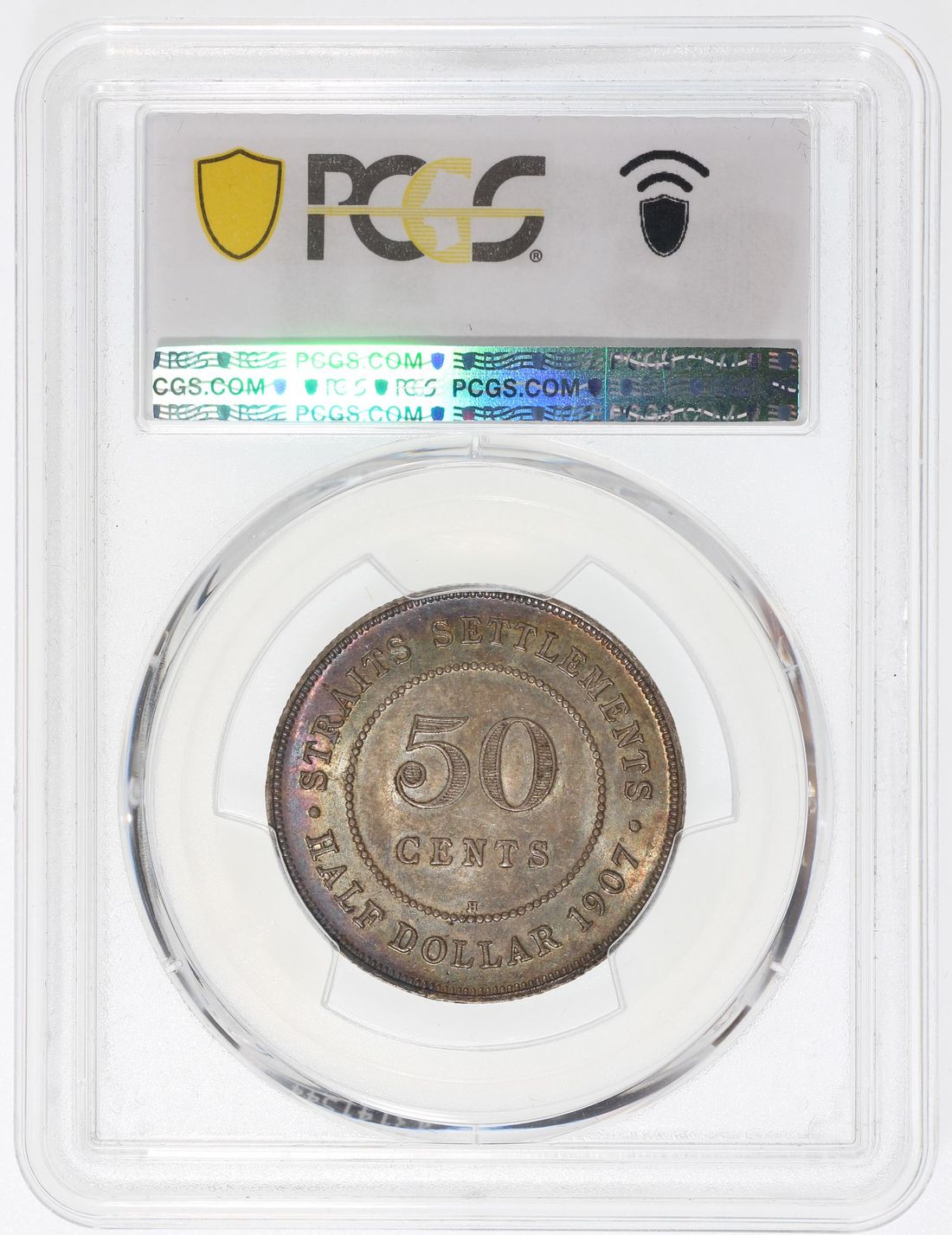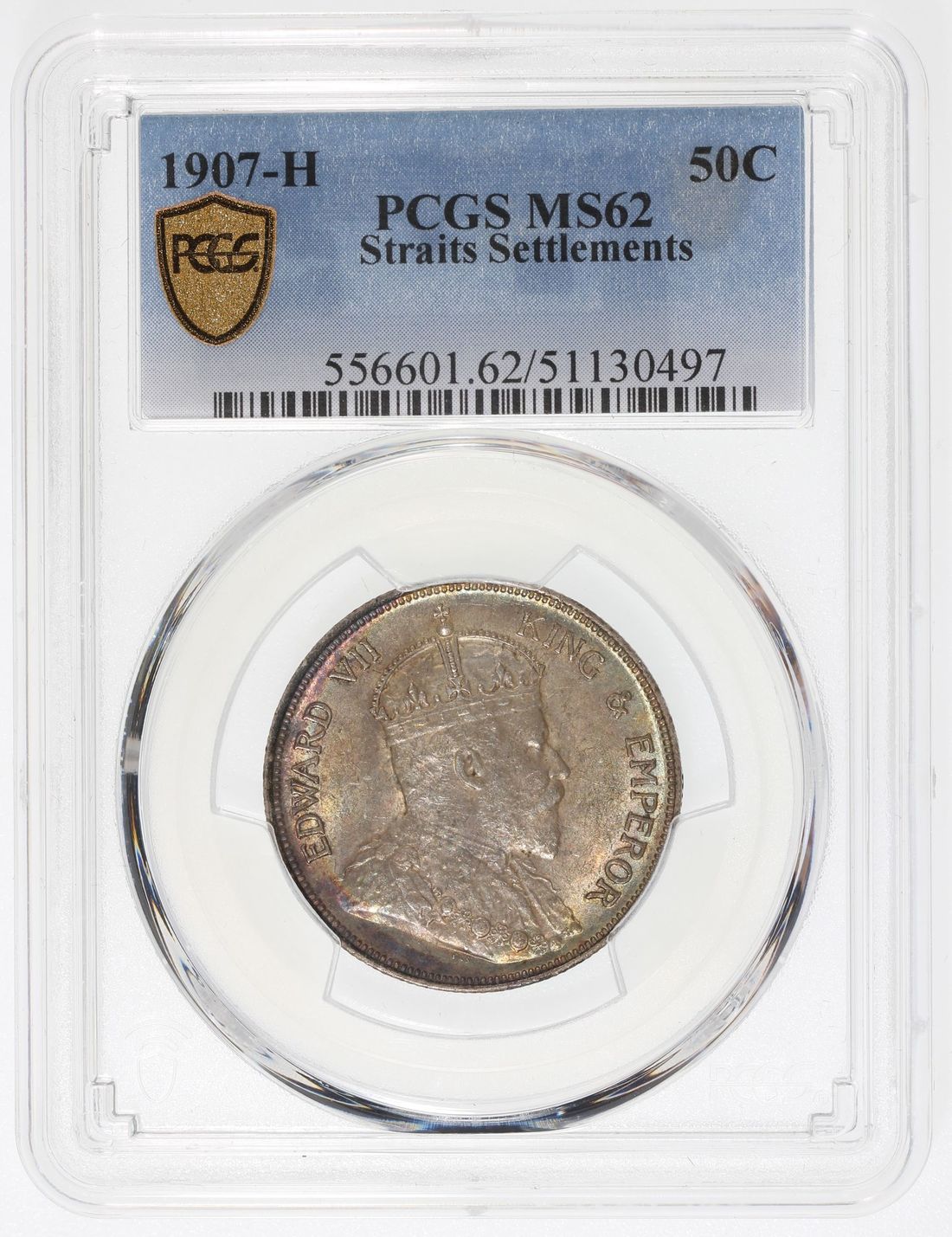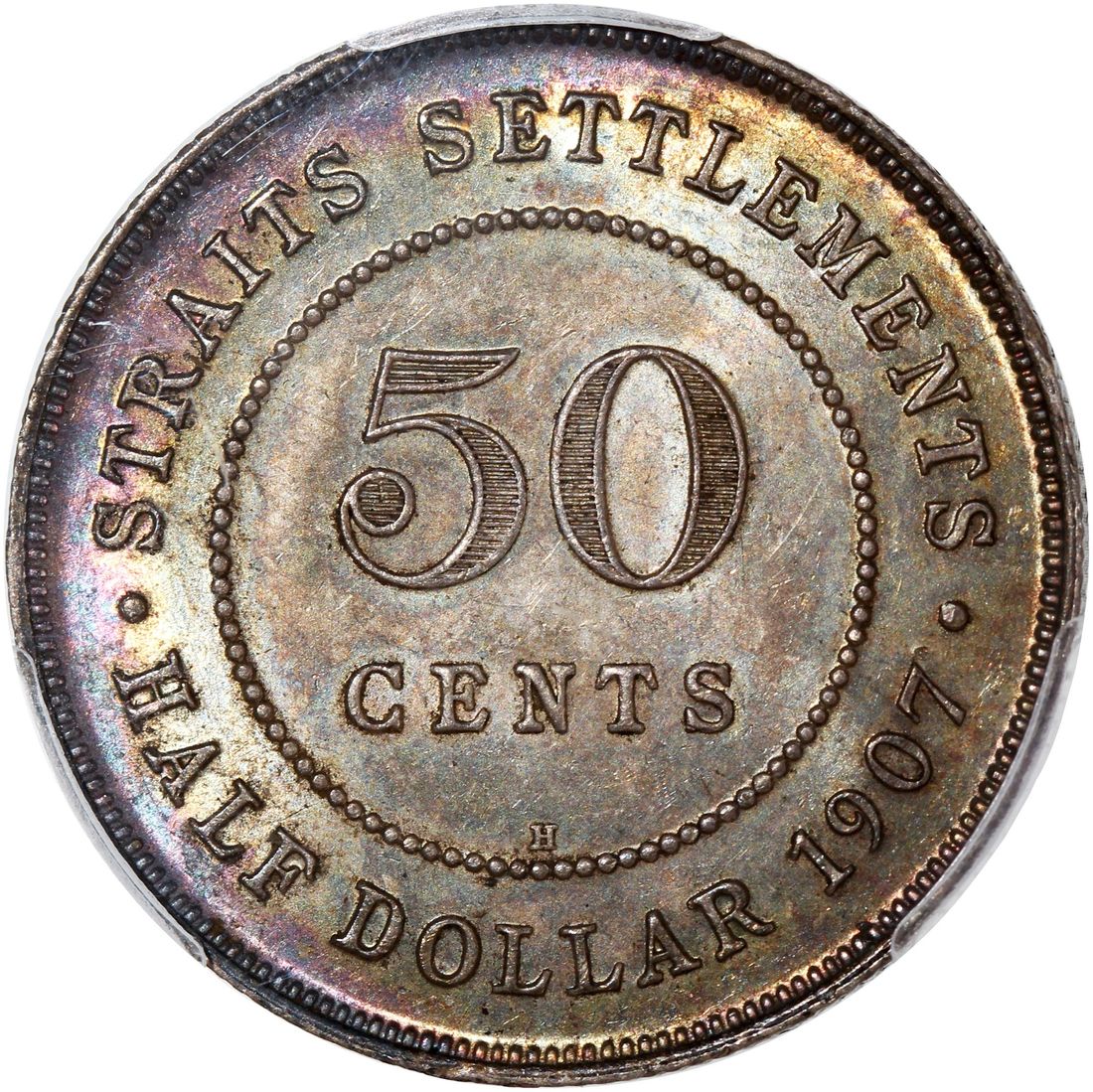 Straits Settlements, Edward VII, [PCGS MS62] silver 50 cents, 1907-H, Heaton Mint, (KM-24), #51130497