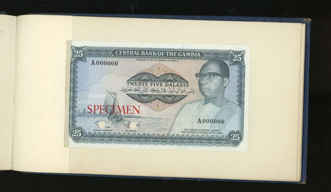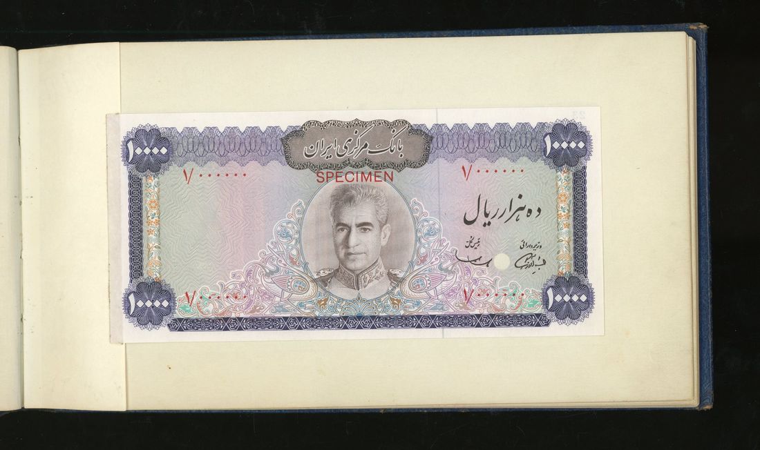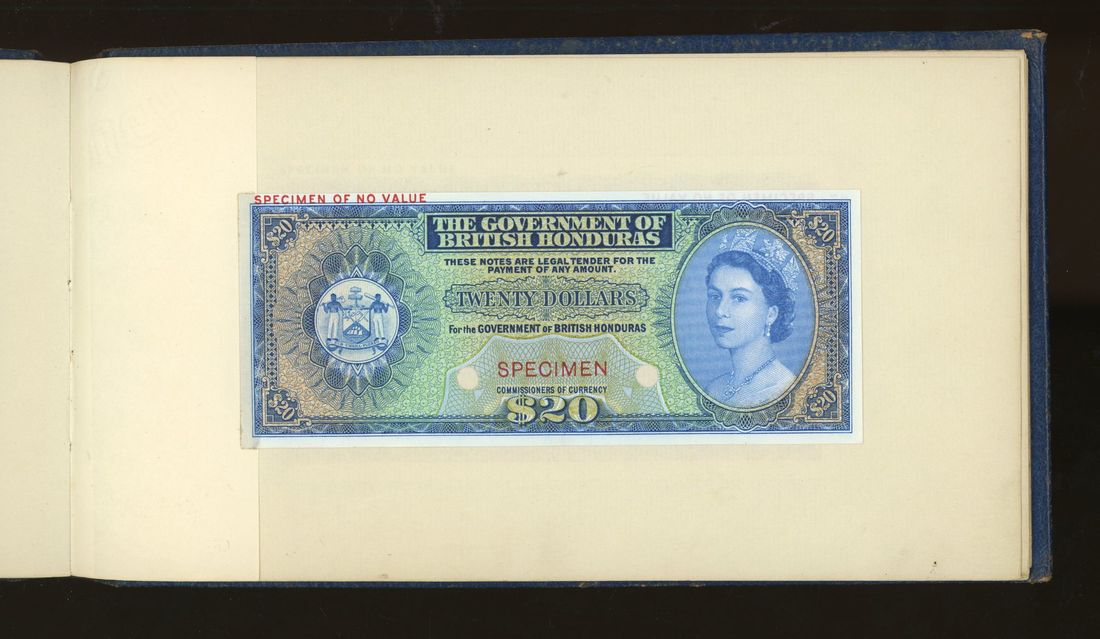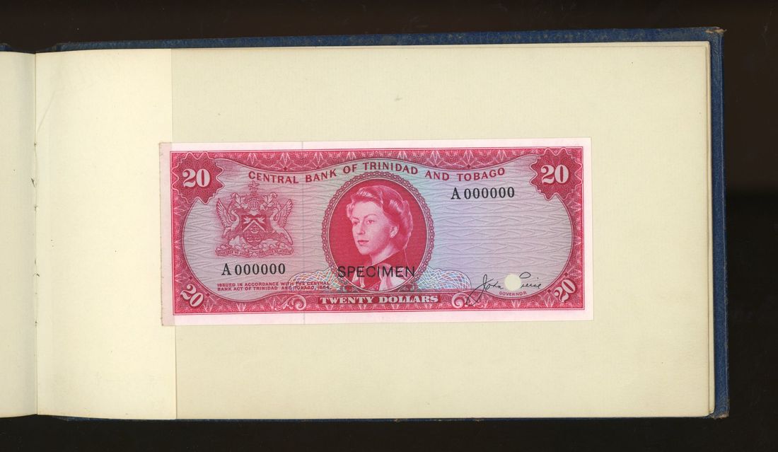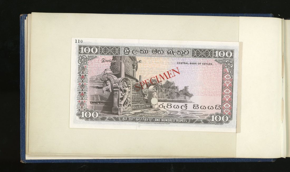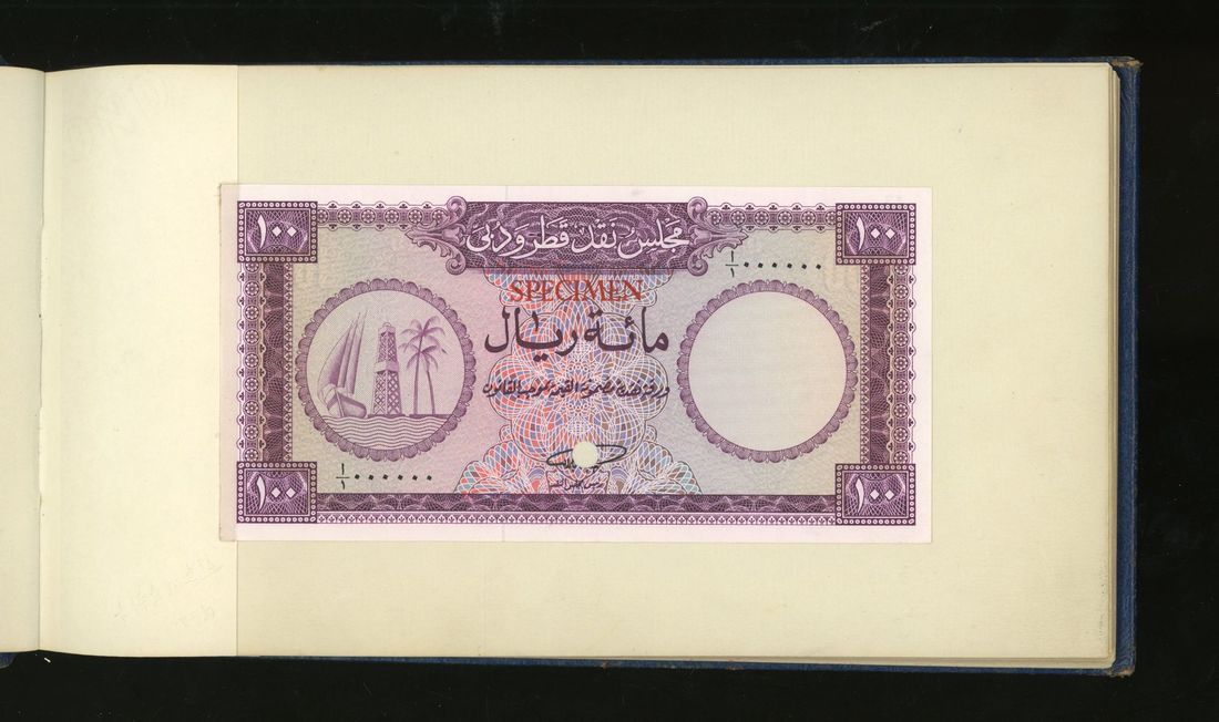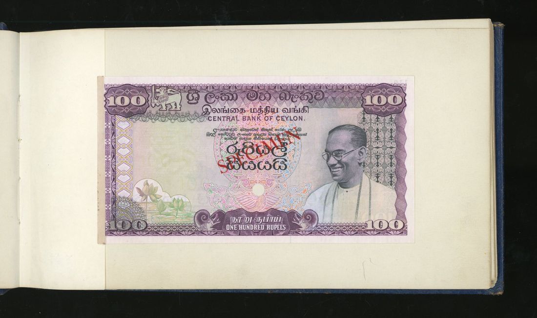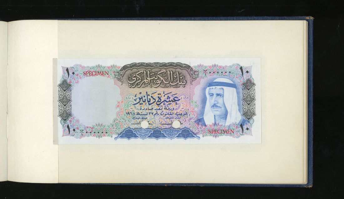 World, an album of 32 countries' colour trial specimen banknotes engraved and printed by Bradbury Wilkinson & Company Limited, consisting of Malaysia 1000 ringgit, ND(1968-72), Singapore $100, ND(1967-73), Brunei $100, 1972-88, 10 rupees, ND(1972), Hong Kong & Shanghai Banking Corporation $50, 1968, Ceylon 100 rupee, 1971, Qatar & Dubai 100 riyals, 1960's and others,