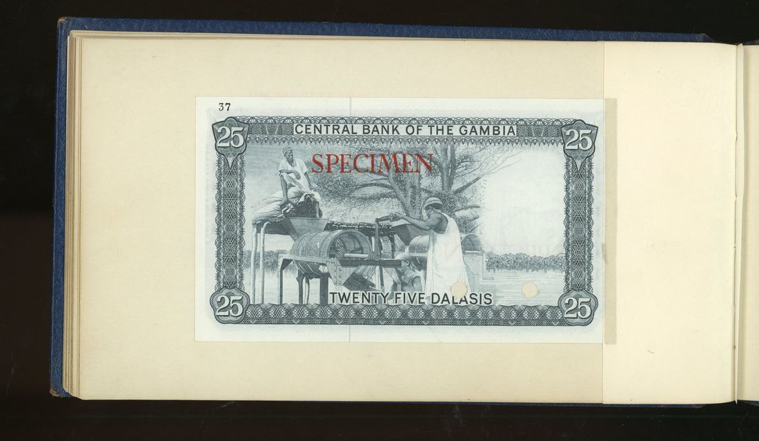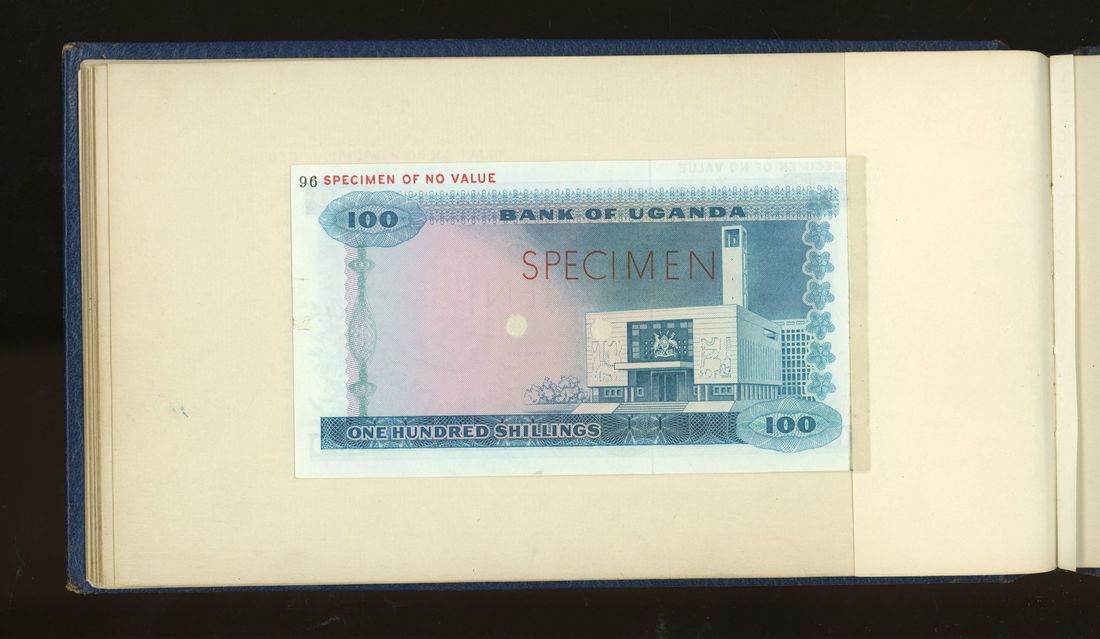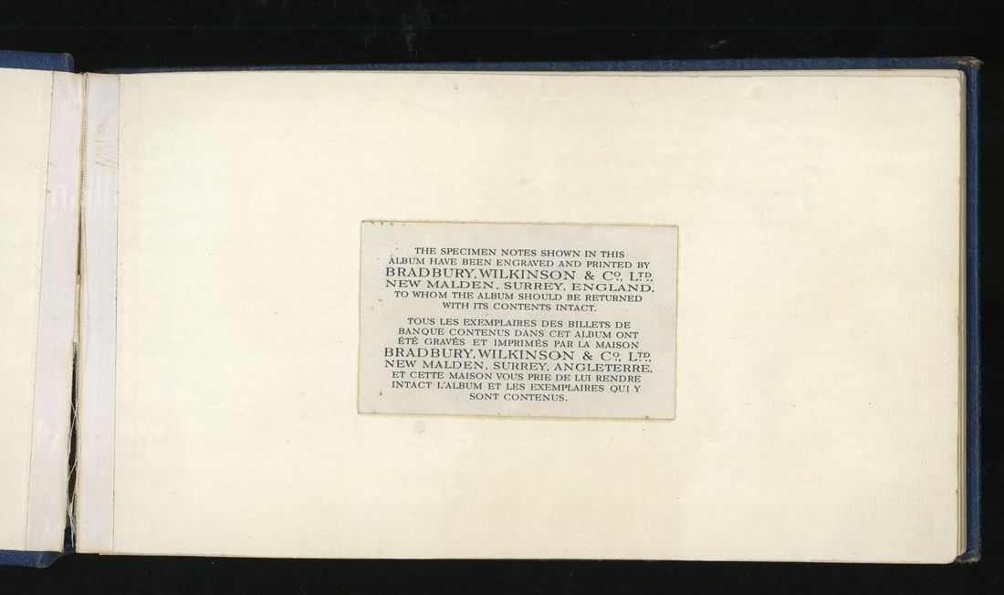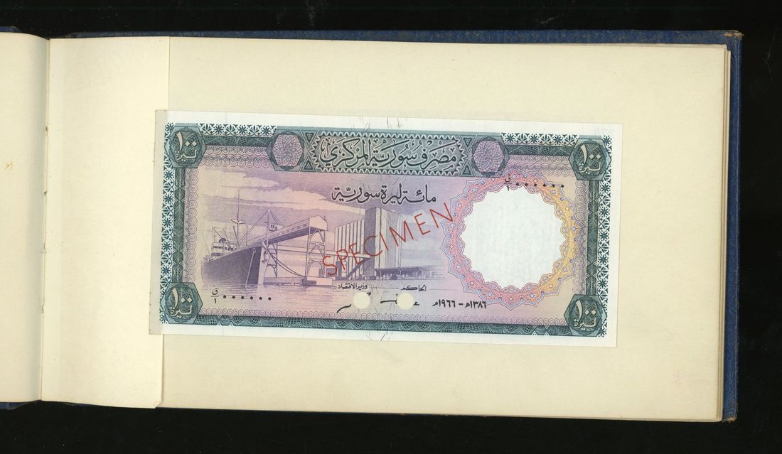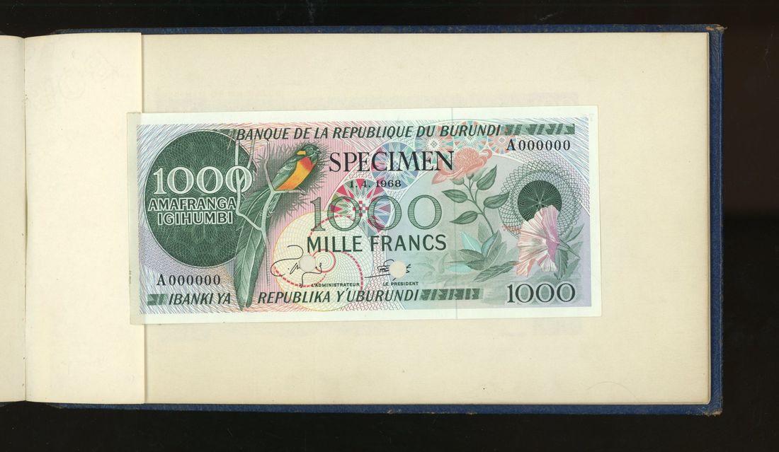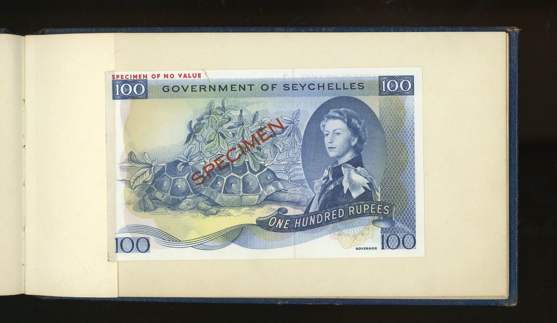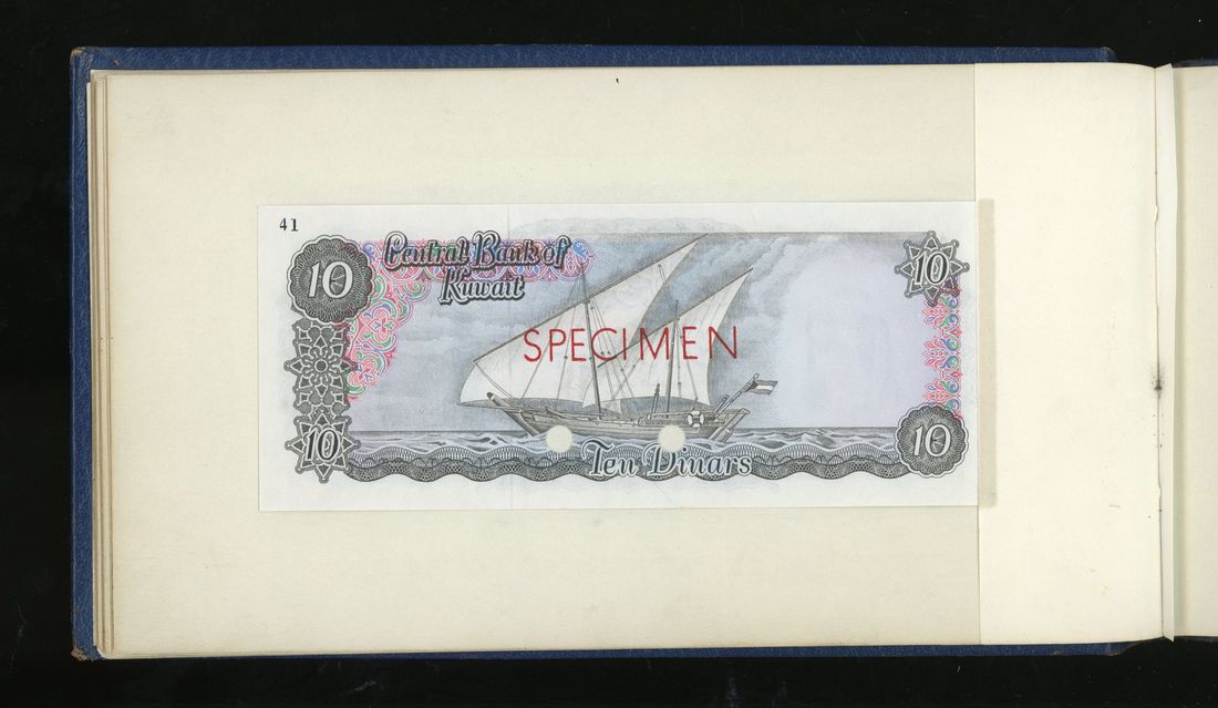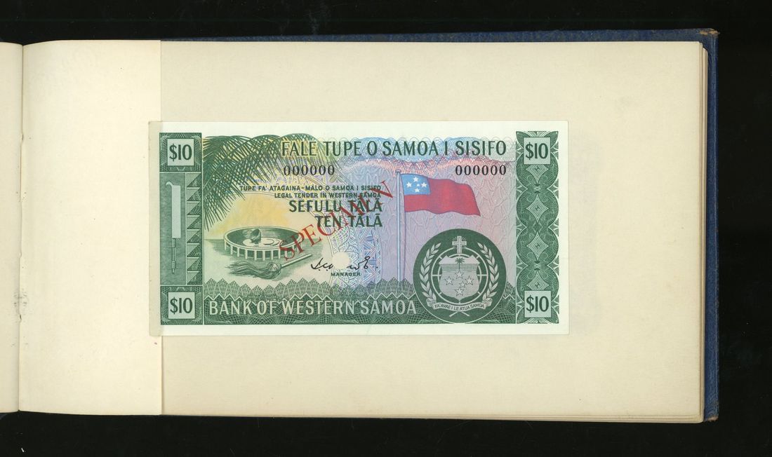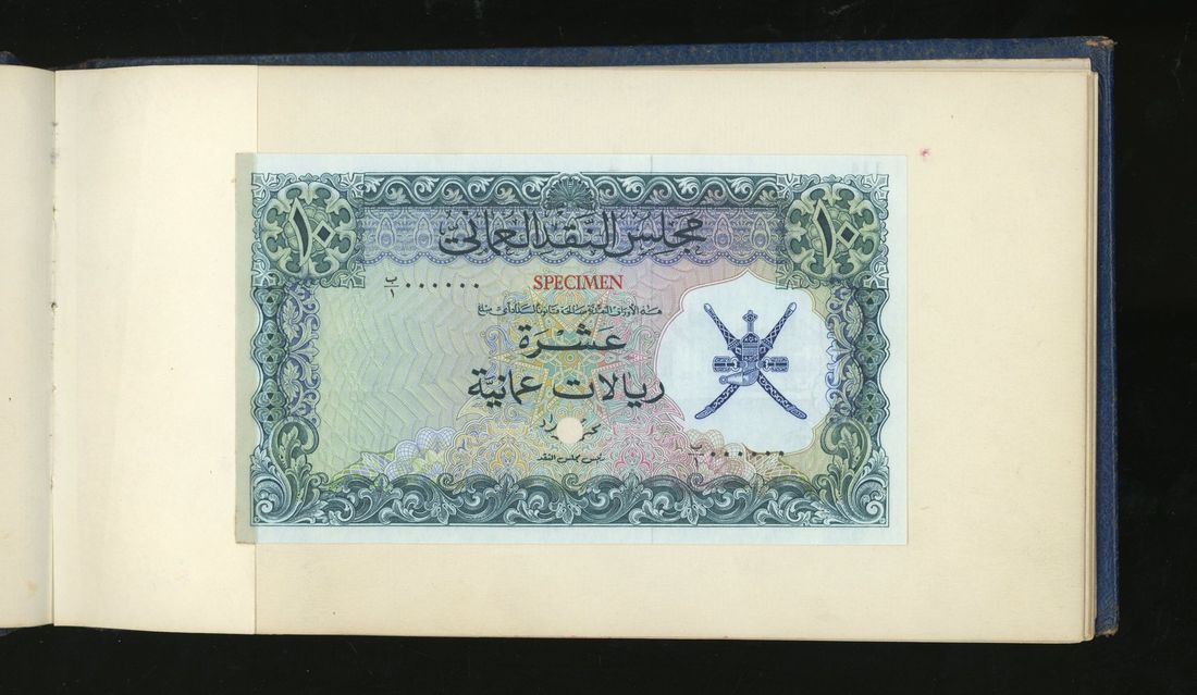 World, an album of 32 countries' colour trial specimen banknotes engraved and printed by Bradbury Wilkinson & Company Limited, consisting of Malaysia 1000 ringgit, ND(1968-72), Singapore $100, ND(1967-73), Brunei $100, 1972-88, 10 rupees, ND(1972), Hong Kong & Shanghai Banking Corporation $50, 1968, Ceylon 100 rupee, 1971, Qatar & Dubai 100 riyals, 1960's and others,