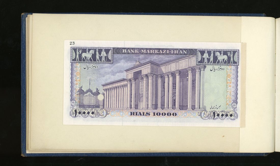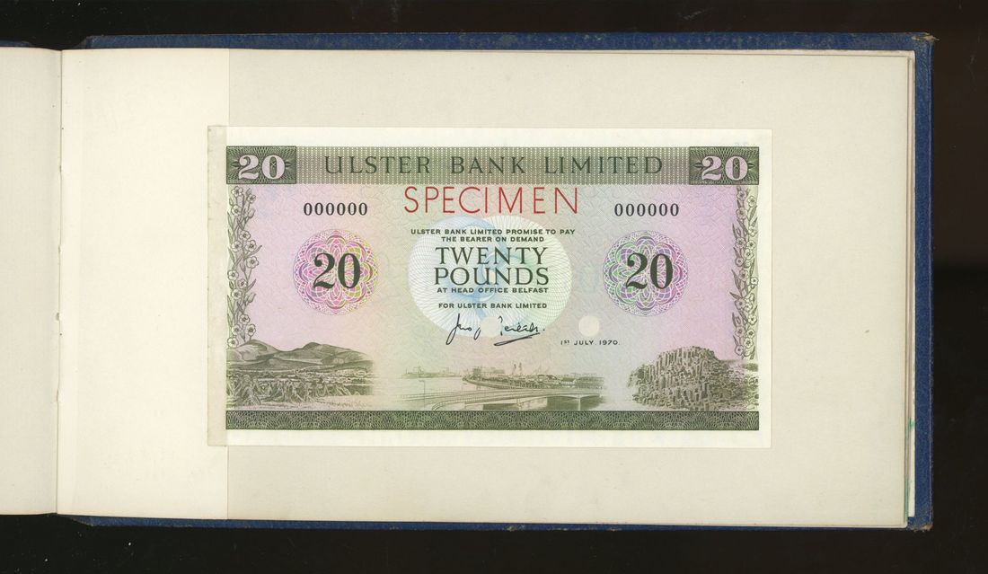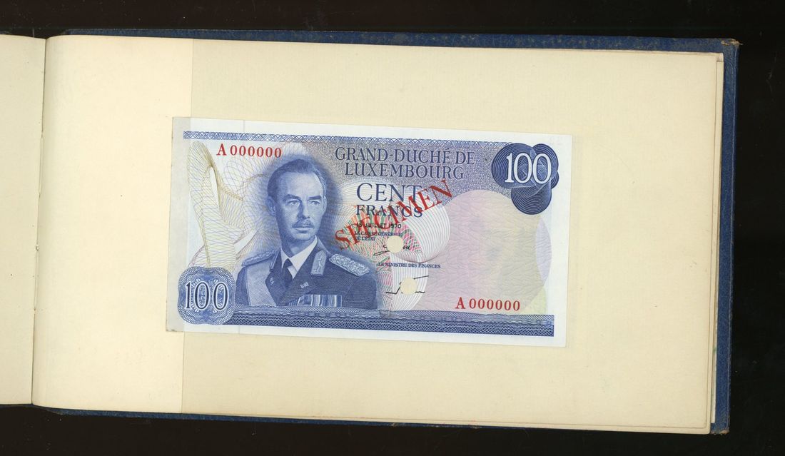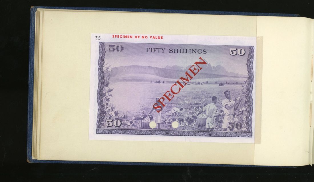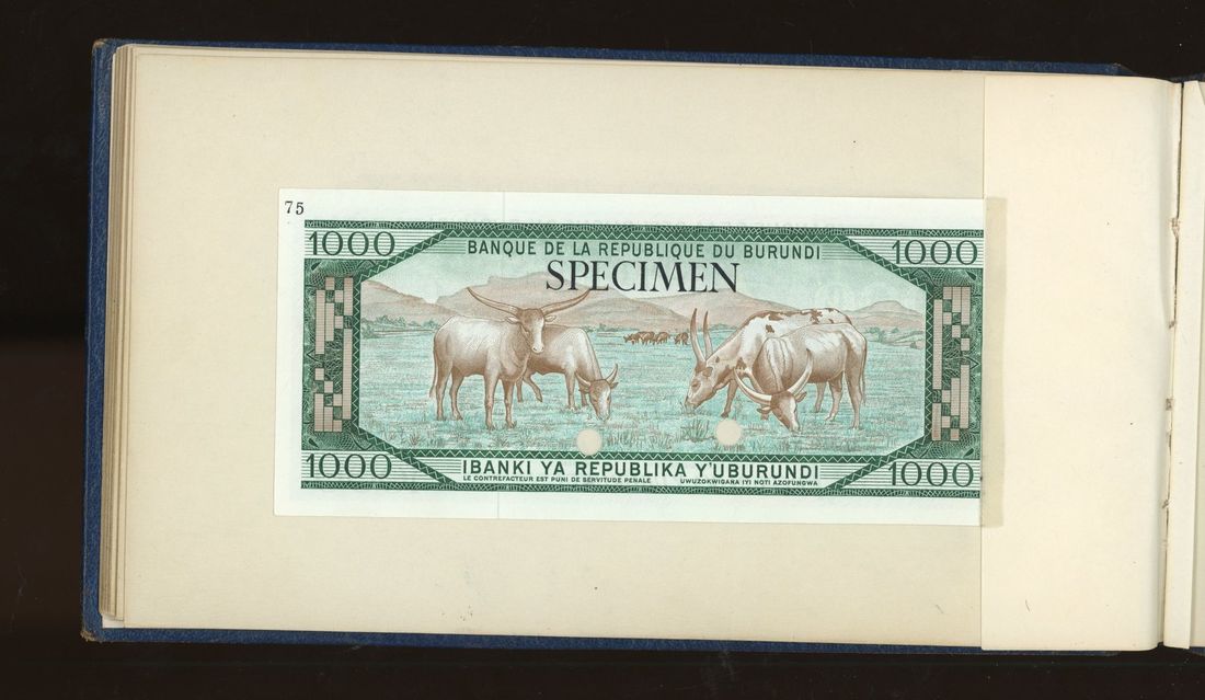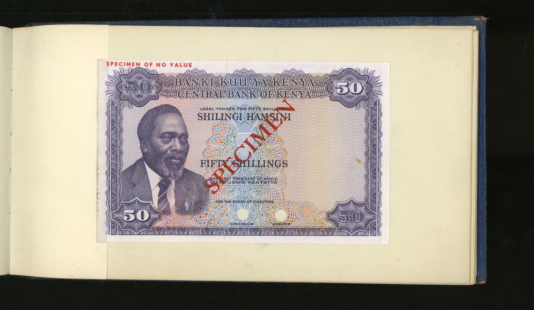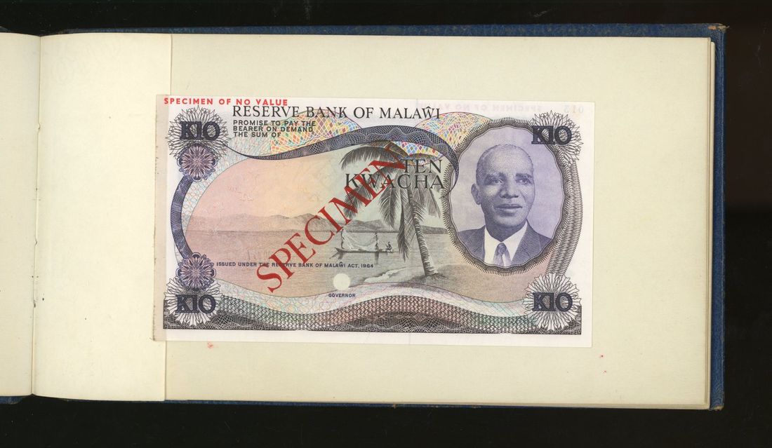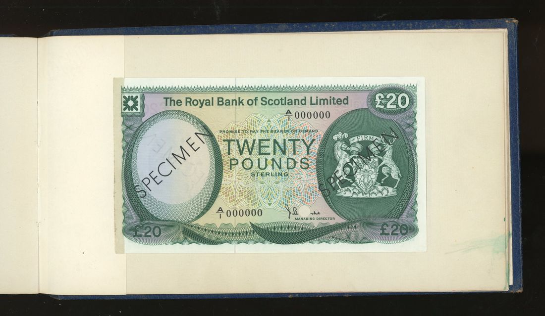 World, an album of 32 countries' colour trial specimen banknotes engraved and printed by Bradbury Wilkinson & Company Limited, consisting of Malaysia 1000 ringgit, ND(1968-72), Singapore $100, ND(1967-73), Brunei $100, 1972-88, 10 rupees, ND(1972), Hong Kong & Shanghai Banking Corporation $50, 1968, Ceylon 100 rupee, 1971, Qatar & Dubai 100 riyals, 1960's and others,