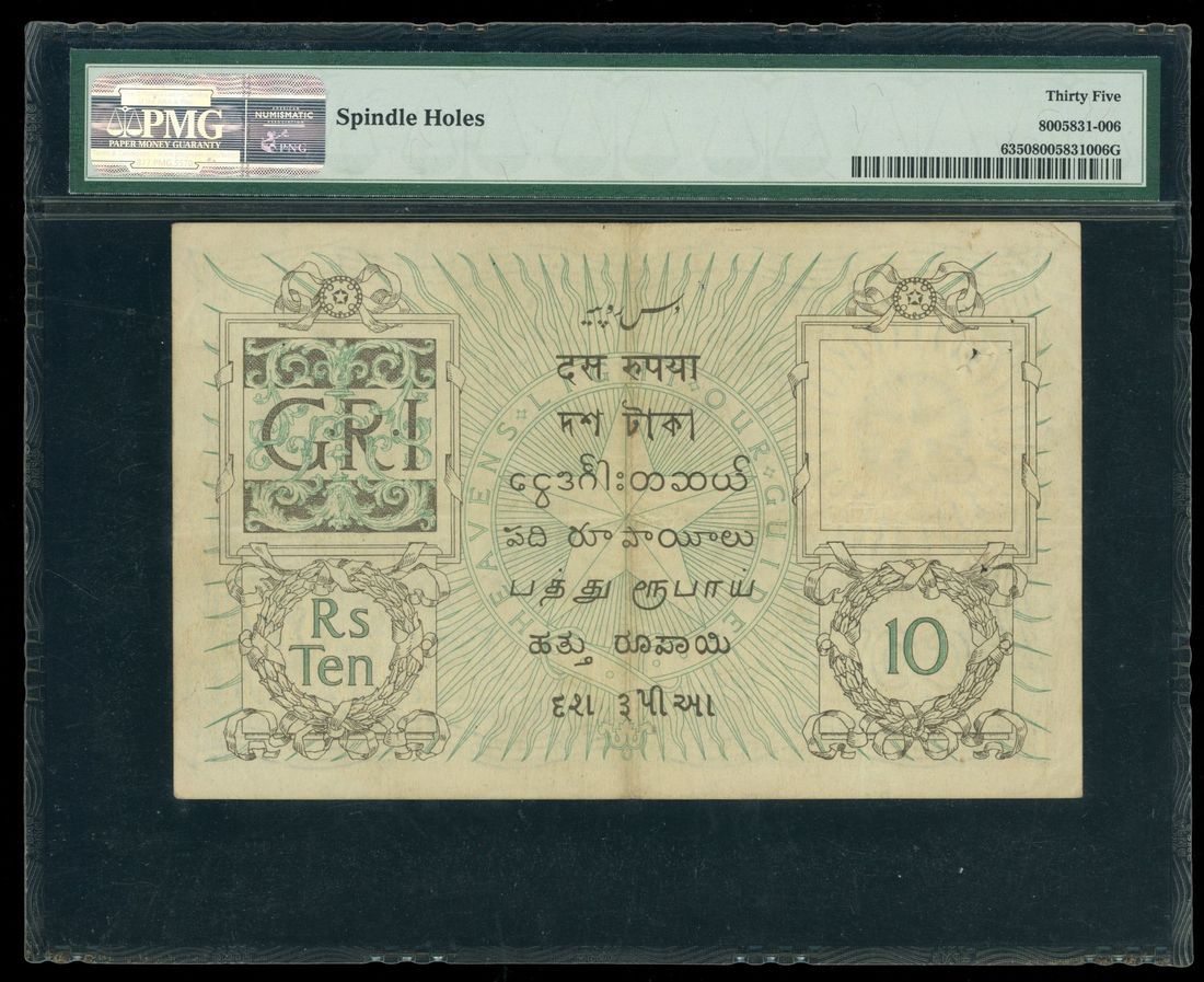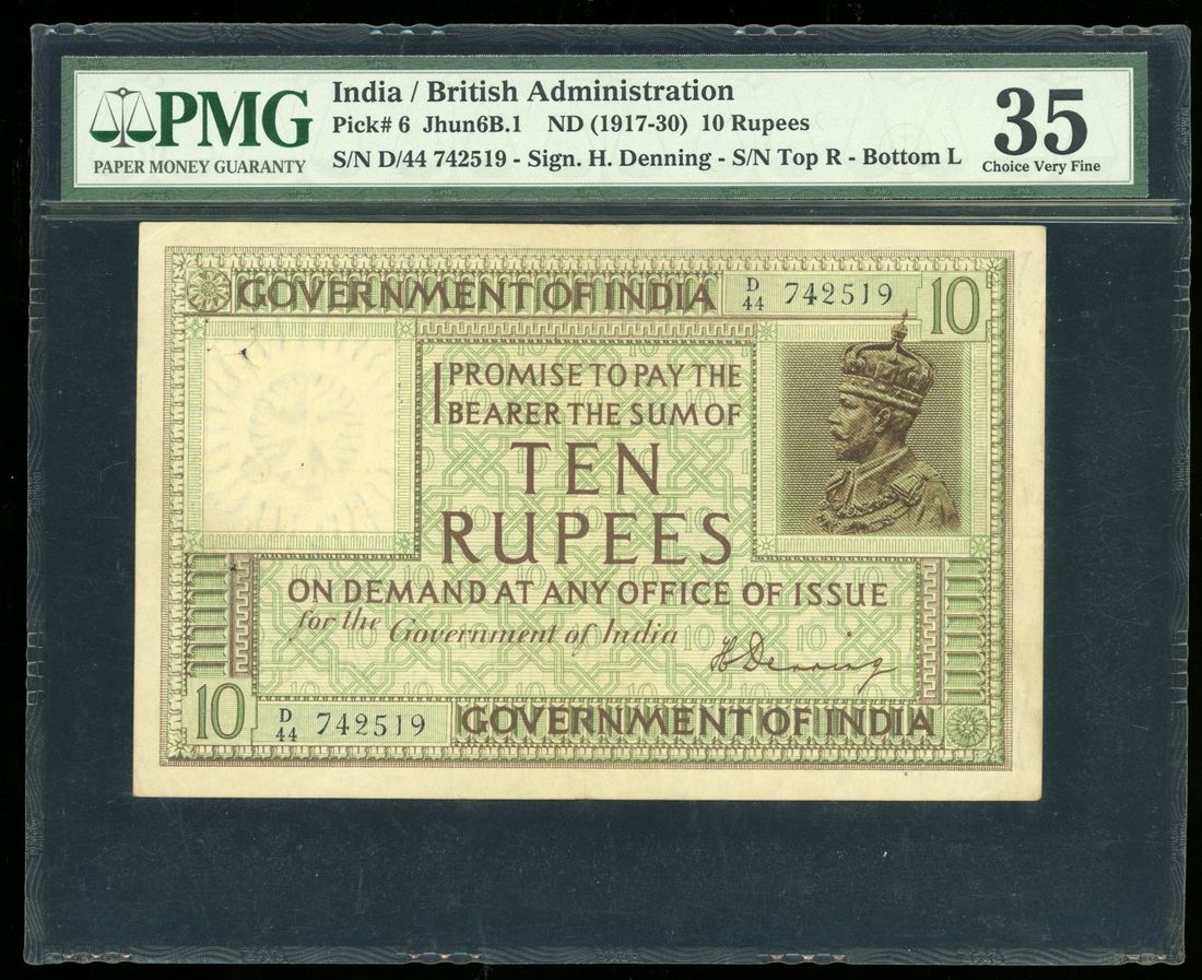Government of India, 10 rupees, ND (1917-30), serial number D/44 742519, signature Denning,