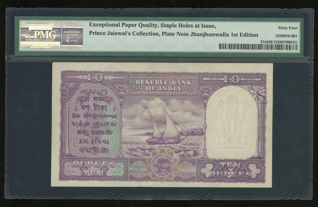 PMG 64EPQ, staple holes at issue, Prince Jaiswal's Collection, Plate Note Jhunjhunwalla 1st Edition, rare