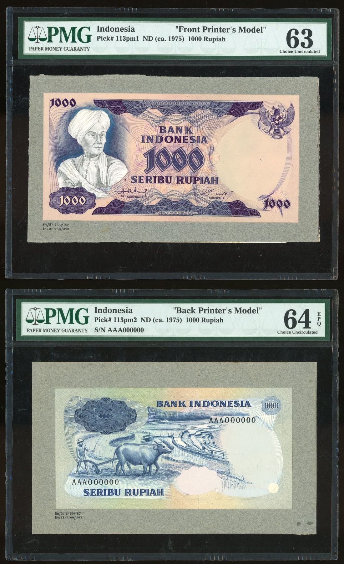 (Pick 113 for type), PMG 63 and 64EPQ respectively (2). Likely unique, very rare
