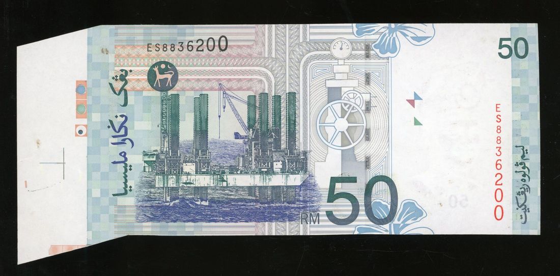 Bank Negara Malaysia, ERROR 50 ringgit, ND (2001), serial number ES8836200, large extra paper at right,