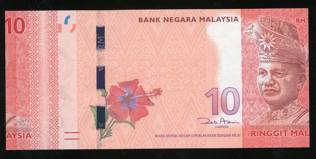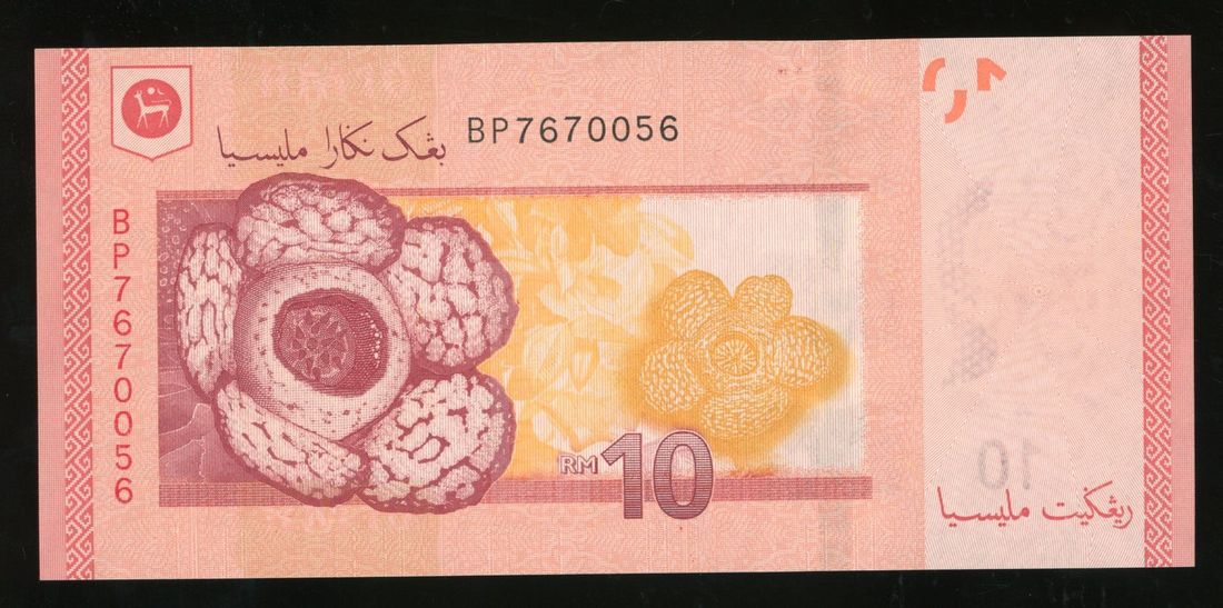 Bank Negara Malaysia, ERROR 10 ringgit, ND (2012), serial number BP7670056, obverse overprint shifted to the right, showing design of another note at left ,
