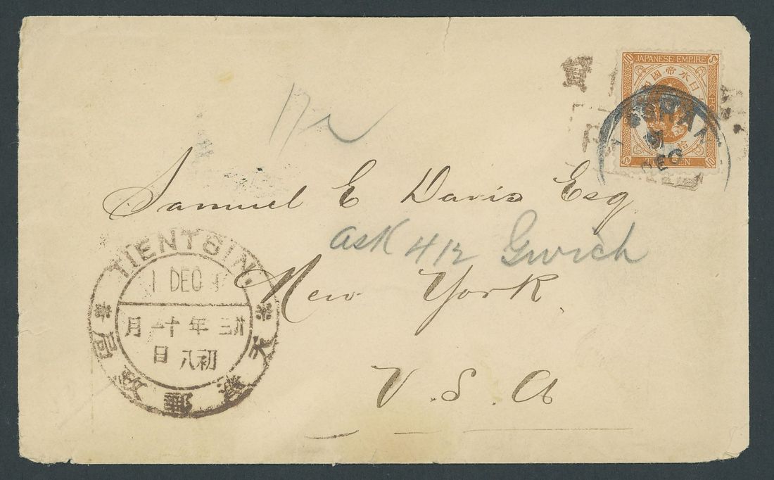 1897 (1 Dec.) envelope to New York bearing Tientsin bilingual "