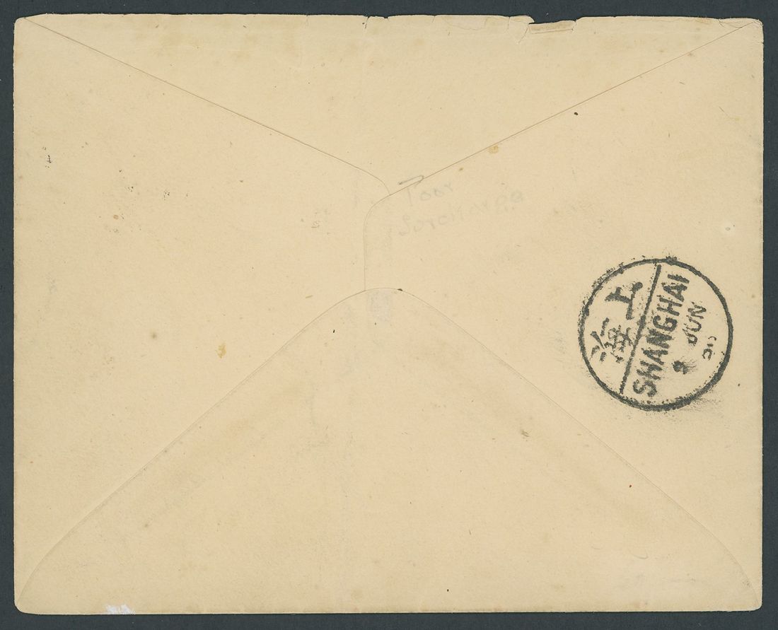 1898 (9 June) Diercking envelope to Shanghai bearing 8c. on 6ca. tied by a superb strike of Shanghai pa-kua, the reverse with Shanghai bilingual c.d.s.; the surcharge shows distinct weakness of the printing ink with the lower central character virtually omitted. Flap missing, vertical bend and light ageing. Photo