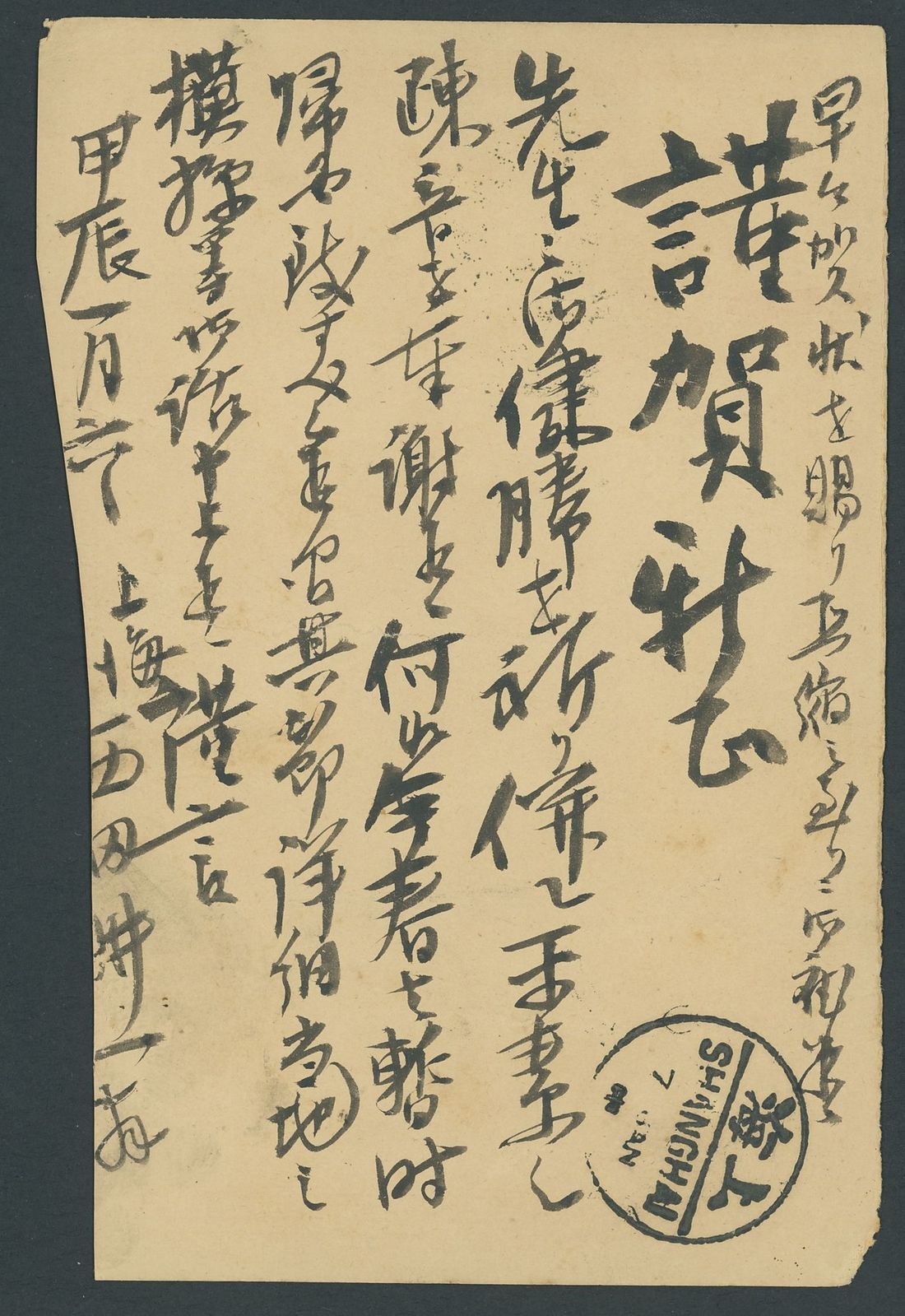 1904 (Jan.) second issue 1c. stationery card (reply section) to Kyoto, uprated with C.I.P. ½c. tied by a fine strike of the double-circle "