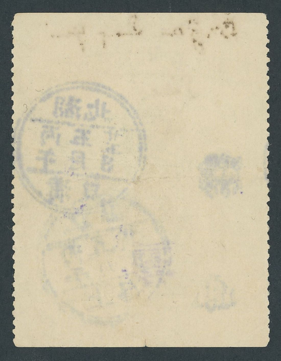 Second Issue: 1906 (27 May) central portion numbered "991" cancelled by Hankow, Hupeh lunar c.d.s. with Kiangsu arrival c.d.s. (30.5); horizontal crease. Photo