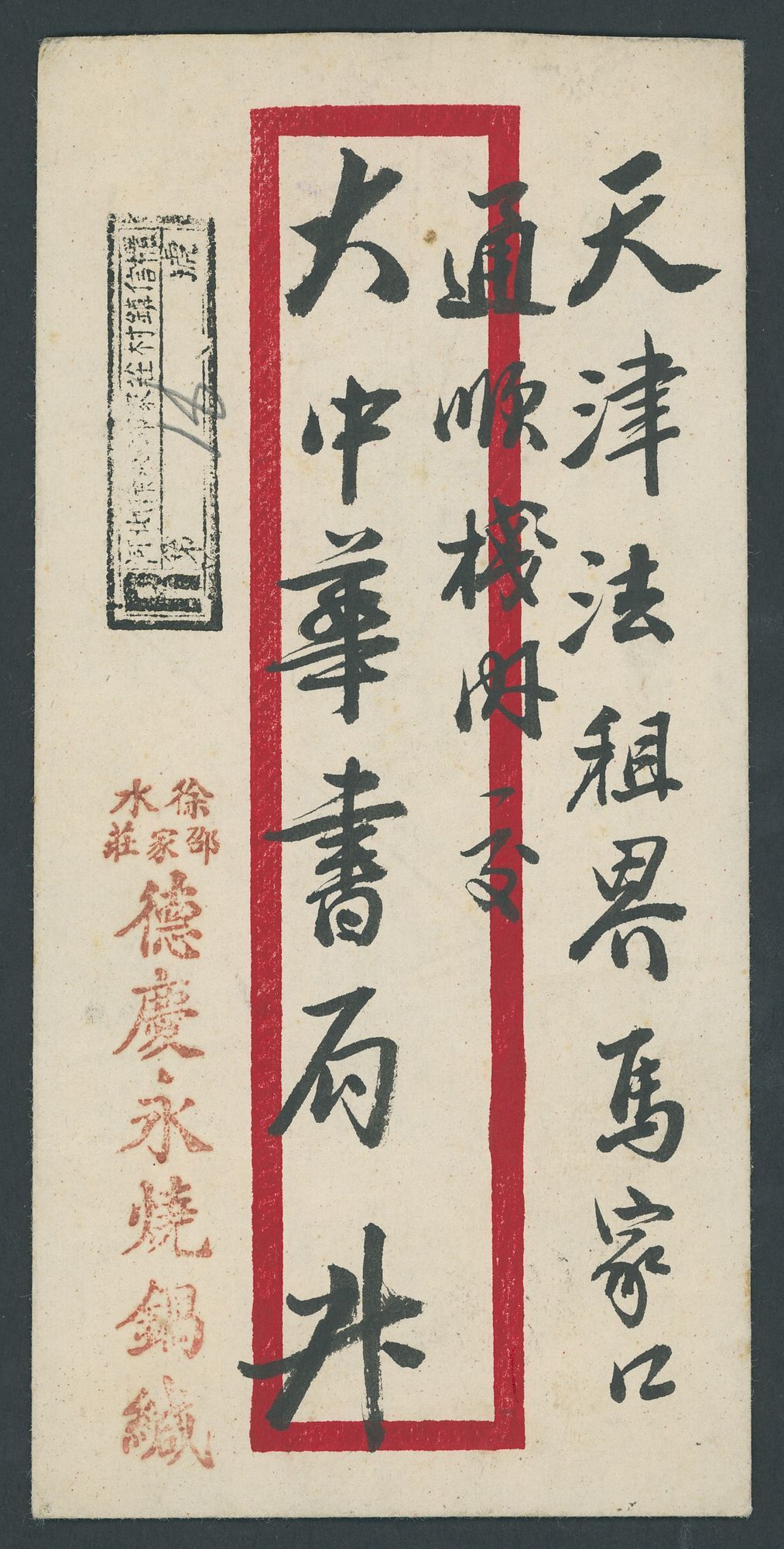 Sushui: 1938 (2 Mar.) envelope registered to Tientsin bearing, on the reverse, Sun Yat Sen 5c. (2) and Martyrs 1c. (3) tied by superb strikes of Sushui, Hopei three-line letter box postmark with English/Chinese despatch c.d.s. alongside plus Tientsin arrival (3.3), part of the registration slip and censor handstamp; the address side with a fine strike of the boxed registered handstamp. An attractive cover. Photo
