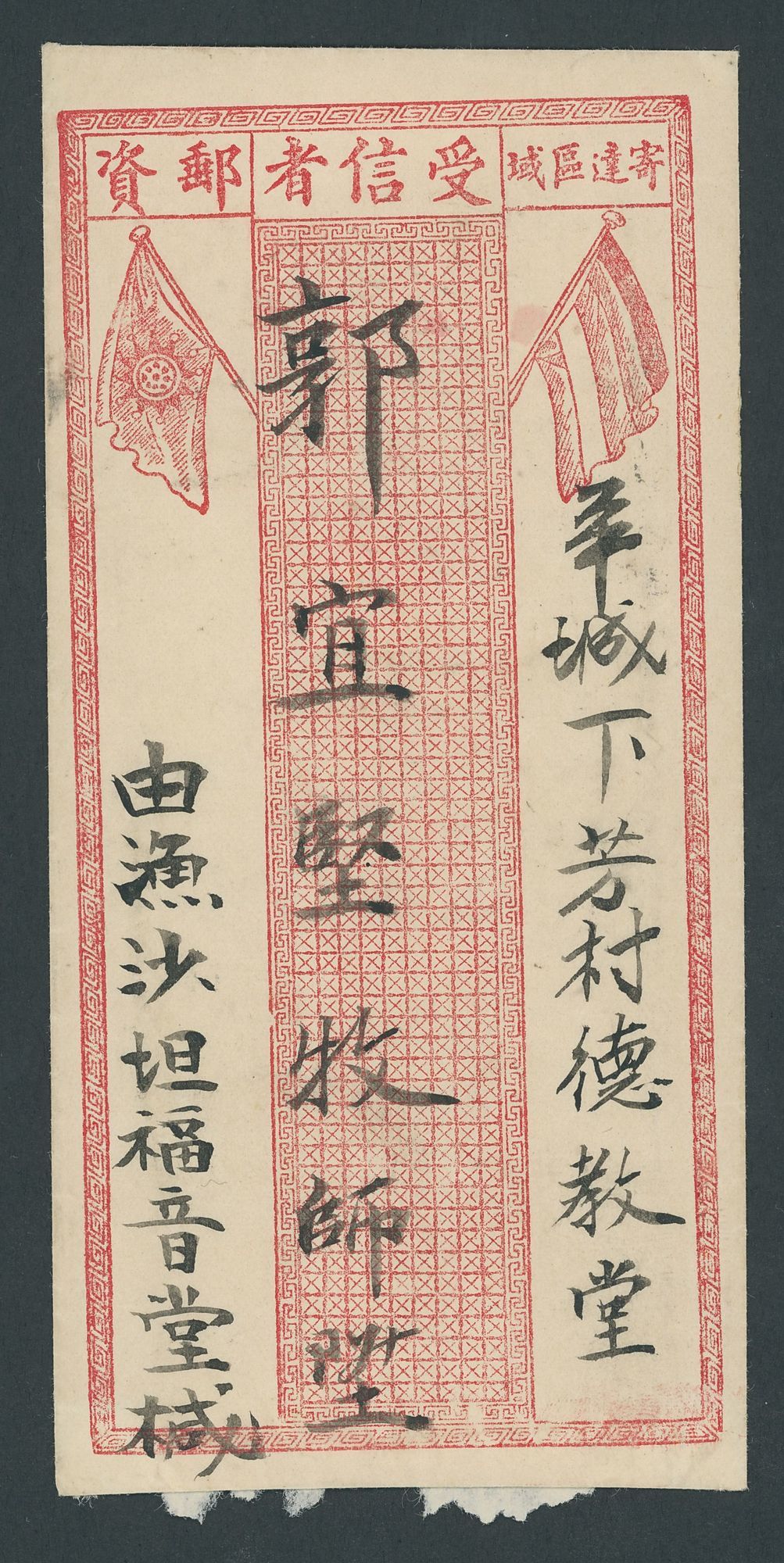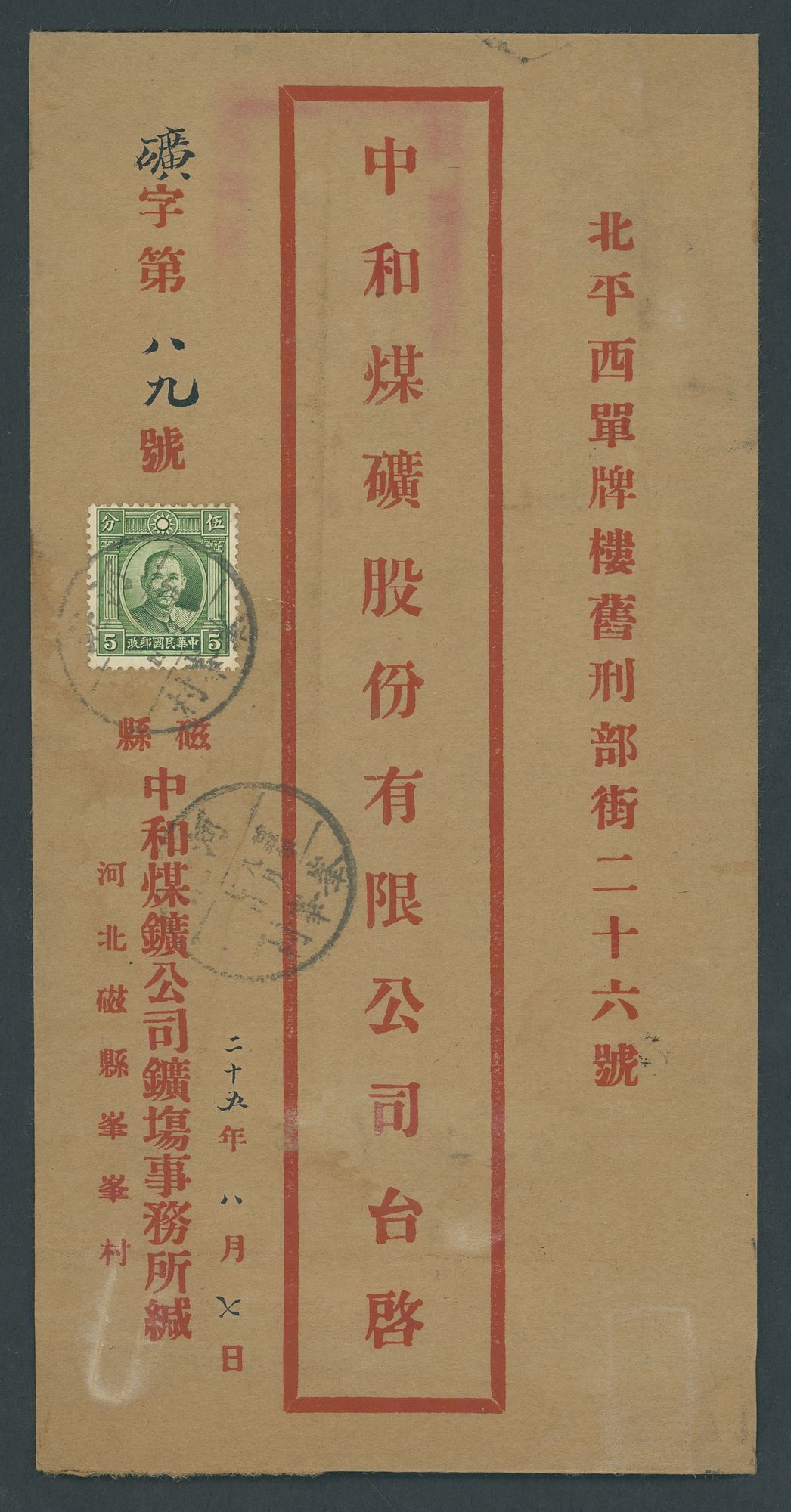 A selection of covers which includes Hopei tombstone, Tasatou Letter Box, fancy numbered daters (2) , Kwangtung round town box with insertion of postal area, Peking circular letter box; a little mixed in places. A good group. (6 covers)