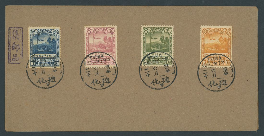 1932 (20 June) unaddressed envelope bearing North-West Scientific Expedition set of four tied by fine strikes of Tihwa (Urumchi) c.d.s. Philatelic, fine. Photo