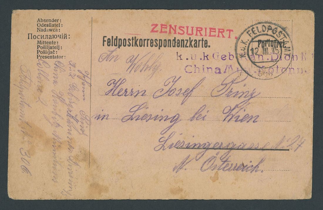 1915 (12 Mar.) censored Feldpost card to Vienna showing "