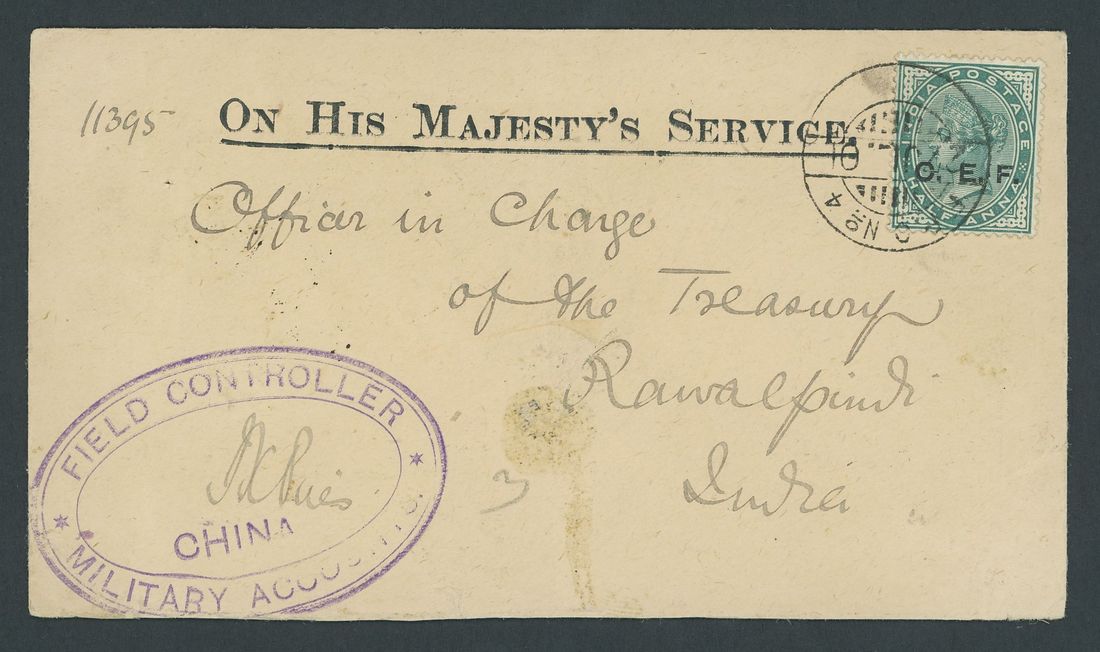 Field Post Office No.4 (Tongku): 1901 (27 July) On His Majesty's Service envelope to India with Q.V. ½a. green tied by a fine strike of "F.P.O. No.4" type 50 c.d.s. with large double-oval "