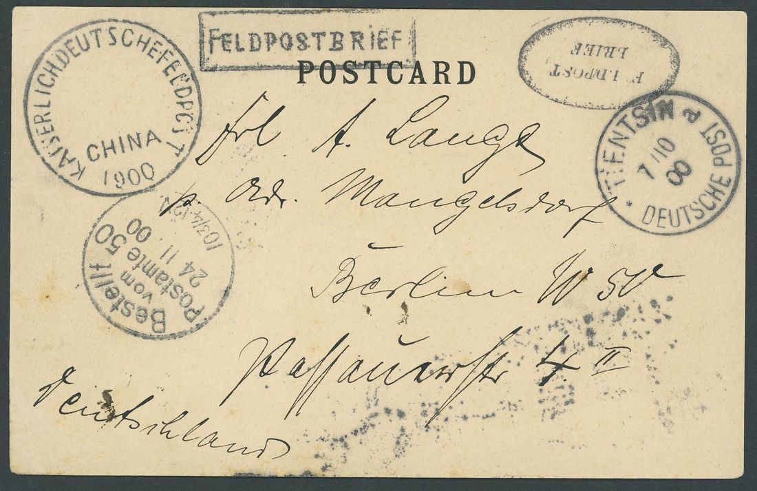 1900 (7 Oct.) stampless picture post card to Berlin bearing large, undated "