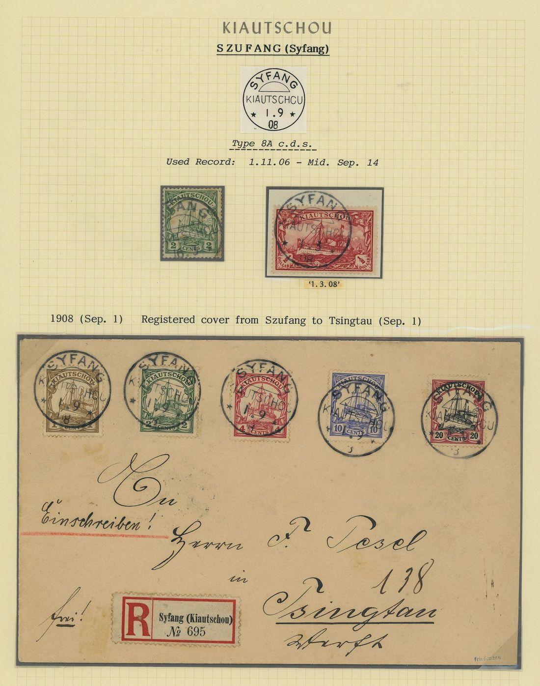 Szufang: 1908 (1 Sept.) envelope registered to Tsingtau bearing 1905 1c., 2c., 4c., 10c. and 20c. tied by "