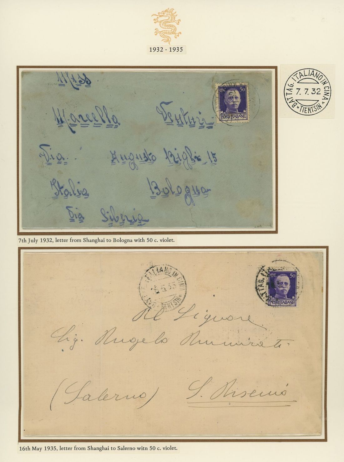 1932-35, three covers to Italy, each bearing Imperial series 50c. bright violet cancelled by the double-circle "