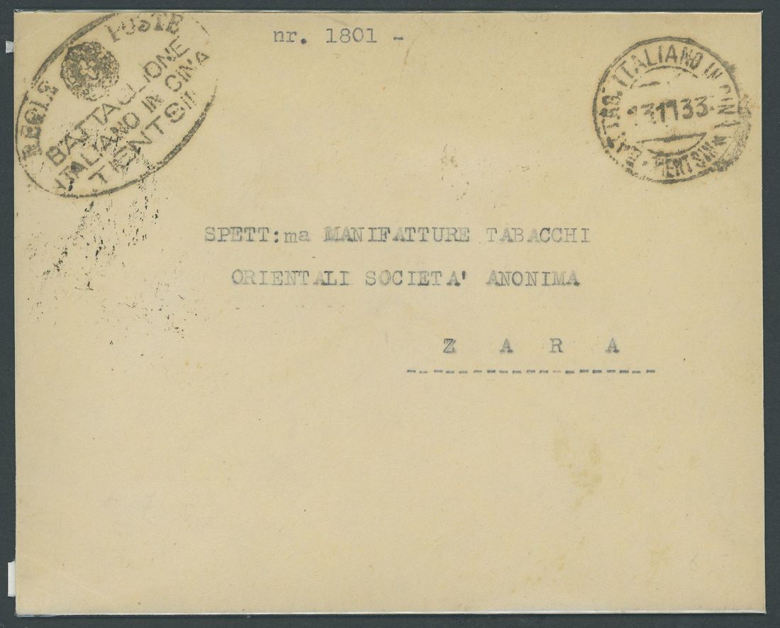 1933 (1 Nov.) stampless free frank envelope to Zara bearing good strikes of the double-circle "